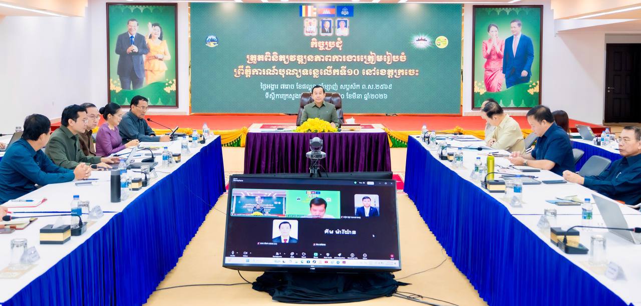 (ភ្នំពេញ)៖ លោក ហួត ហាក់ រដ្ឋមន្ត្រីក្រសួងទេសចរណ៍ និងជាប្រធានគណៈកម្មការអន្តរក្រសួងរៀបចំបុណ្យទន្លេ លើកទី១០ ឆ្នាំ២០២៦ នៅថ្ងៃទី១០ ខែមីនា ឆ្នាំ២០២៦ បានអញ្ជើញដឹកនាំកិច្ចប្រជុំត្រួតពិនិត្យវឌ្ឍនភាពការងារត្រៀមរៀបចំព្រឹត្តិការណ៍បុណ្យទន្លេលើកទី១០ នៅខេត្តក្រចេះ ក្រោមប្រធានបទ៖ «ទន្លេបៃតង បេតិកភណ្ឌវប្បធម៌ និងធម្មជាតិមហាសាល» ចាប់ពីថ្ងៃទី២៧ ដល់ថ្ងៃទី២៩ ខែមីនា ឆ្នាំ២០២៦។