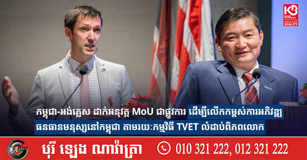 កម្ពុជា-អង់គ្លេស ដាក់អនុវត្ត MoU ជាផ្លូវការ ដើម្បីលើកកម្ពស់ការអភិវឌ្ឍធនធានមនុស្សនៅកម្ពុជា តាមរយៈកម្មវិធី TVET លំដាប់ពិភពលោក