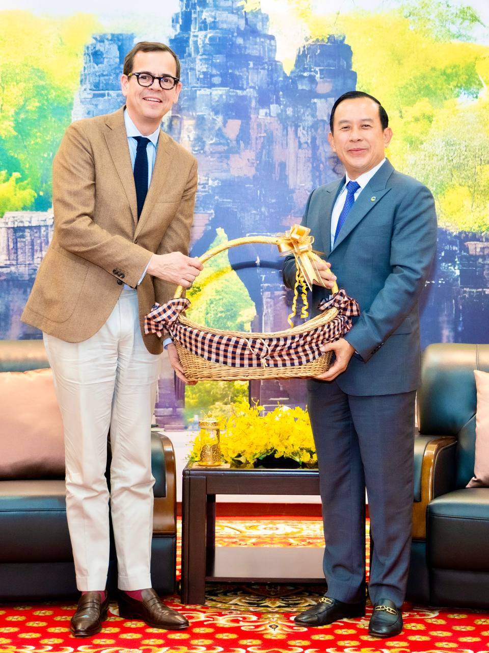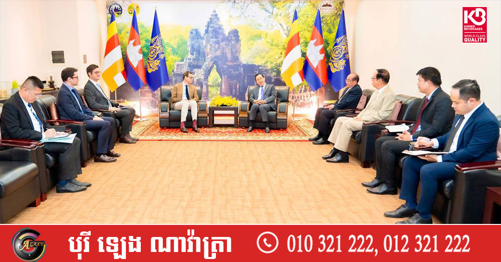 (ភ្នំពេញ)៖ លោក ហួត ហាក់ រដ្ឋមន្ត្រីក្រសួងទេសចរណ៍ បានអនុញ្ញាតជូនលោក Emmanuel MENANTEAU សមាជិកគណៈកម្មាធិការប្រតិបត្តិនៃក្រុមហ៊ុន VINCI Airport និងជានាយកទទួលបន្ទុកតំបន់សហរដ្ឋអាមេរិក អឺរ៉ុបខាងជើង និងខាងកើត និងអាស៊ីអាគ្នេយ៍ និងជាប្រធានក្រុមប្រឹក្សាភិបាលនៃក្រុមហ៊ុន Société Concessionnaire de l’Aéroport (SCA) និងសហការី ចូលជួបសម្តែងការគួរសម និងពិភាក្សាការងារ នាថ្ងៃទី១០ ខែមីនា ឆ្នាំ២០២៦ នៅទីស្តីការក្រសួងទេសចរណ៍។