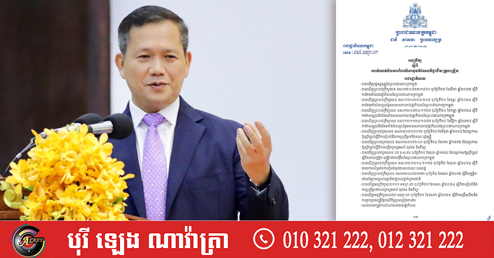 ខាងក្រោមនេះជាអនុក្រឹត្យរបស់សម្តេចនាយករដ្ឋមន្ត្រី៖