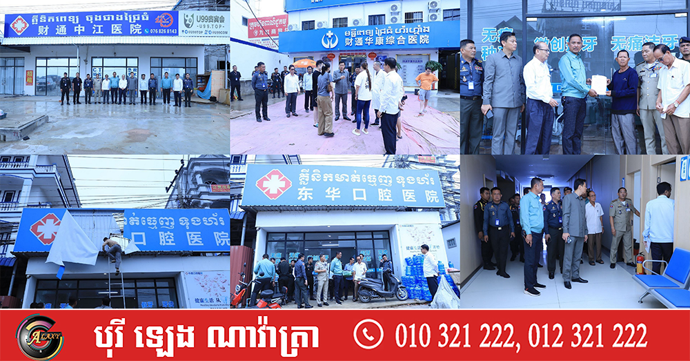 អាជ្ញាធរខេត្តកណ្ដាល ចុះបិទទីតាំងពេទ្យឯកជនគ្មានច្បាប់អនុញ្ញាត៨កន្លែងរបស់ជនជាតិចិន នៅក្រុងសំពៅពូន
