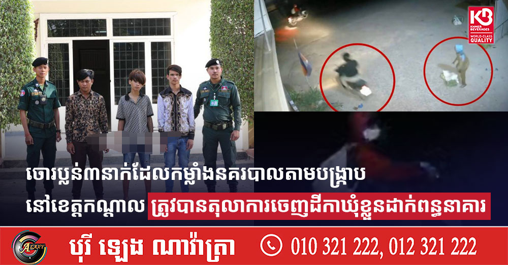 ចោរប្លន់៣នាក់ដែលកម្លាំងនគរបាលតាមបង្ក្រាបនៅខេត្តកណ្តាល ត្រូវបានតុលាការចេញដីកាឃុំខ្លួនដាក់ពន្ធនាគារ