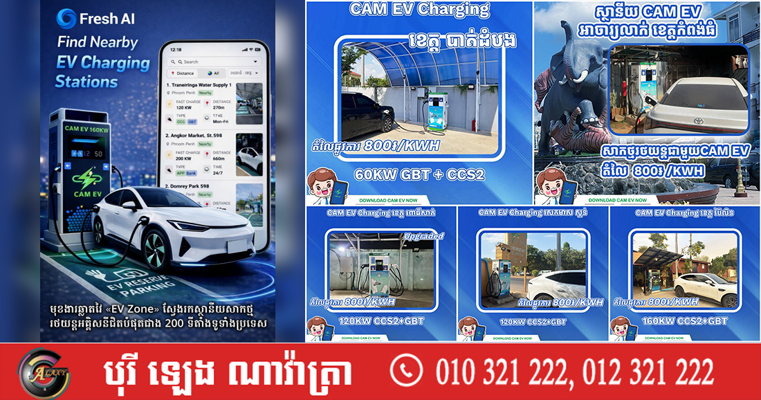 វិបត្តិប្រេងសាំង! ស្ថានីយសាកឡានអគ្គិសនី Cam EV ប្រកាសបញ្ចុះតម្លៃសាកត្រឹមតែ ៨០០រៀល ចំនួន ៥ទីតាំង
