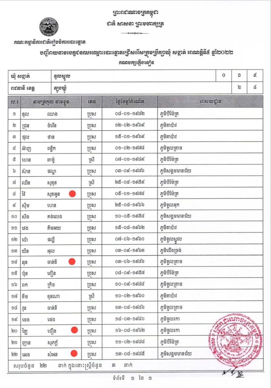 បេក្ខជនក្រុមប្រឹក្សាគណបក្សភ្លើងទៀន ចំនួន៤នាក់ នៅឃុំទួលស្នួល ស្រុកក្រូចឆ្មា សុំរួមរស់ជាមួយគណបក្សប្រជាជនកម្ពុជា