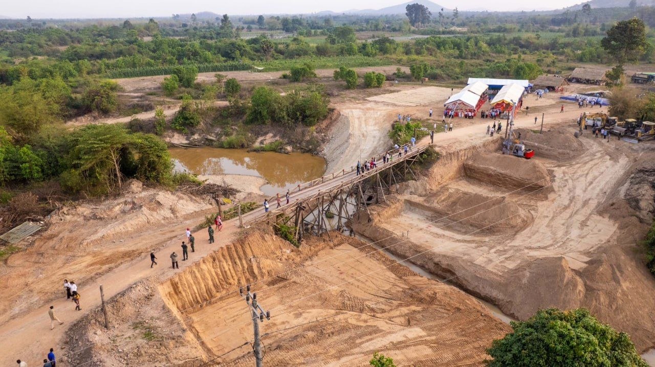 (កំពត)៖ លោក នួន ដាញ៉ិល រដ្ឋលេខាធិការតំណាងលោក ឆាយ ឬទ្ធិសែន រដ្ឋមន្រ្តីក្រសួងអភិវឌ្ឍន៍ជនបទ និងលោក ម៉ៅ ធនិន អភិបាលខេត្តកំពត បានអញ្ជើញចូលរួមជាគណៈធិបតីក្នុងពិធីបើកការដ្ឋានសាងសង់ស្ពាន បេតុងដំរីផុង ដែលស្ថិតនៅភូមិសាស្រ្តព្រំប្រទល់រវាងឃុំស្ទឹងកែវ និងឃុំថ្មីនៃស្រុកទឹកឈូ ខេត្តកំពត។ ពិធីបើកការដ្ឋានសាងសង់ស្ពានបេតុងខាងលើ បានប្រព្រឹត្តធ្វើឡើង នាថ្ងៃទី១២ ខែមីនា ឆ្នាំ២០២៦ ស្ថិតក្នុងភូមិដំរីផុង ឃុំស្ទឹងកែវ ស្រុកទឹកឈូ ខេត្តកំពត។