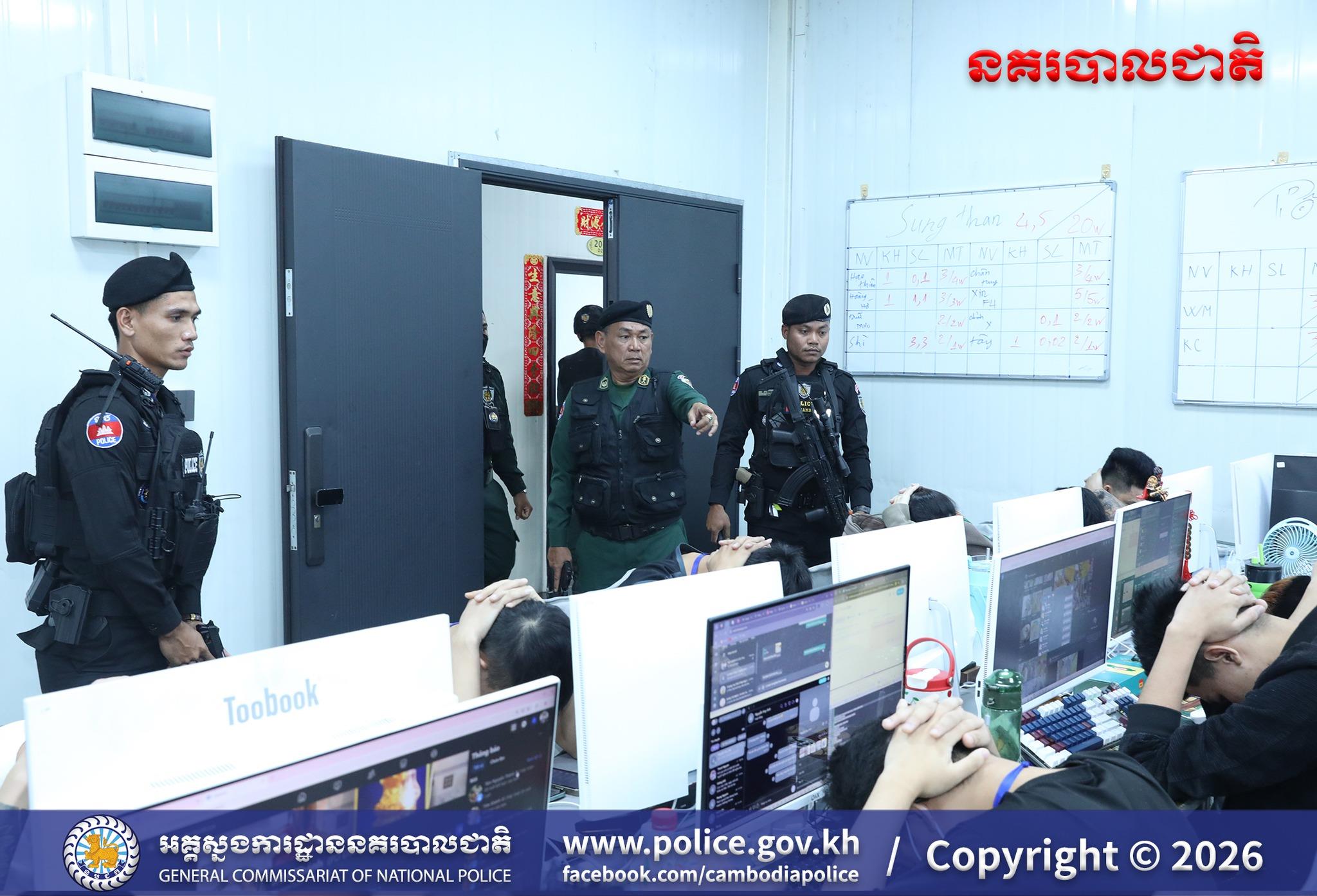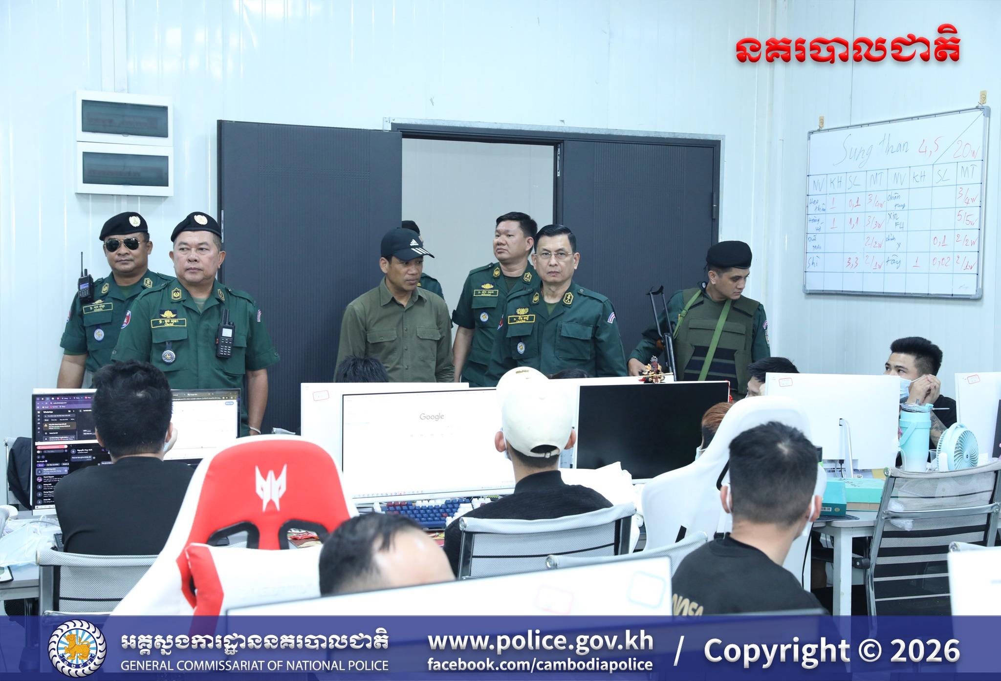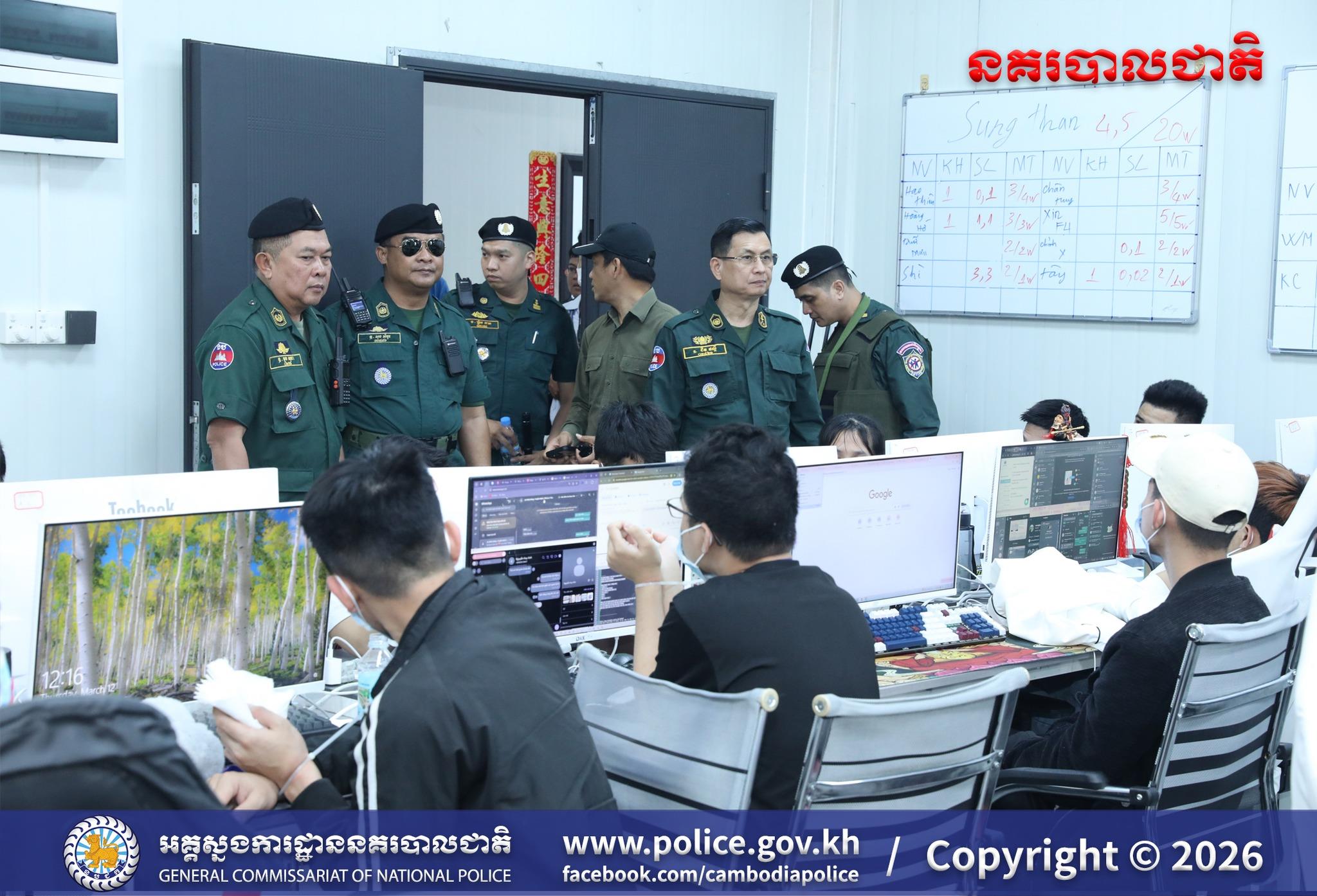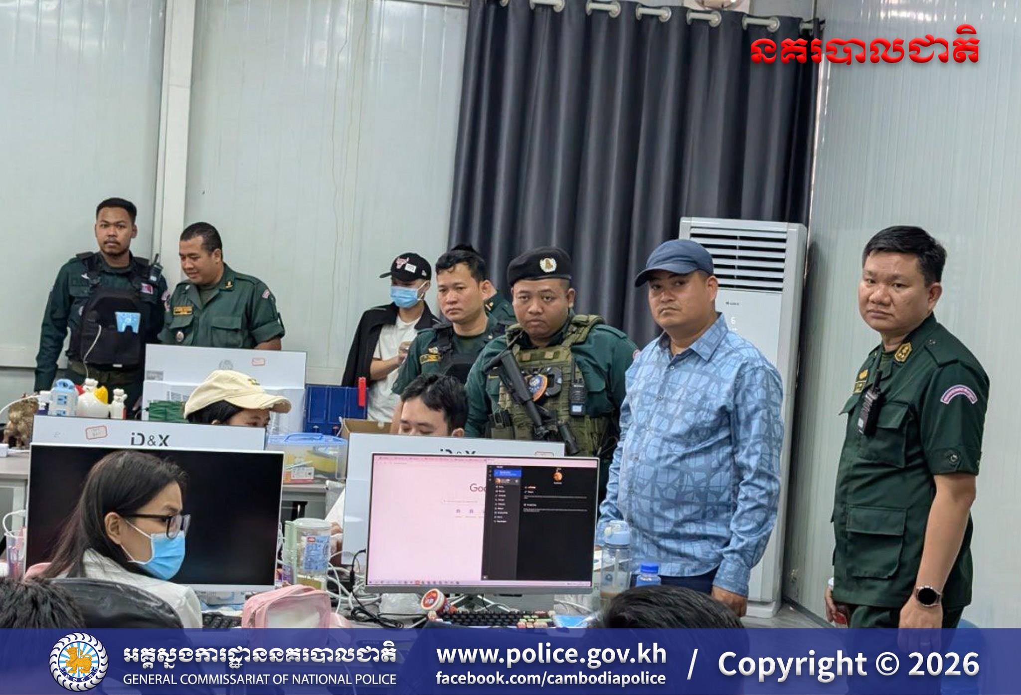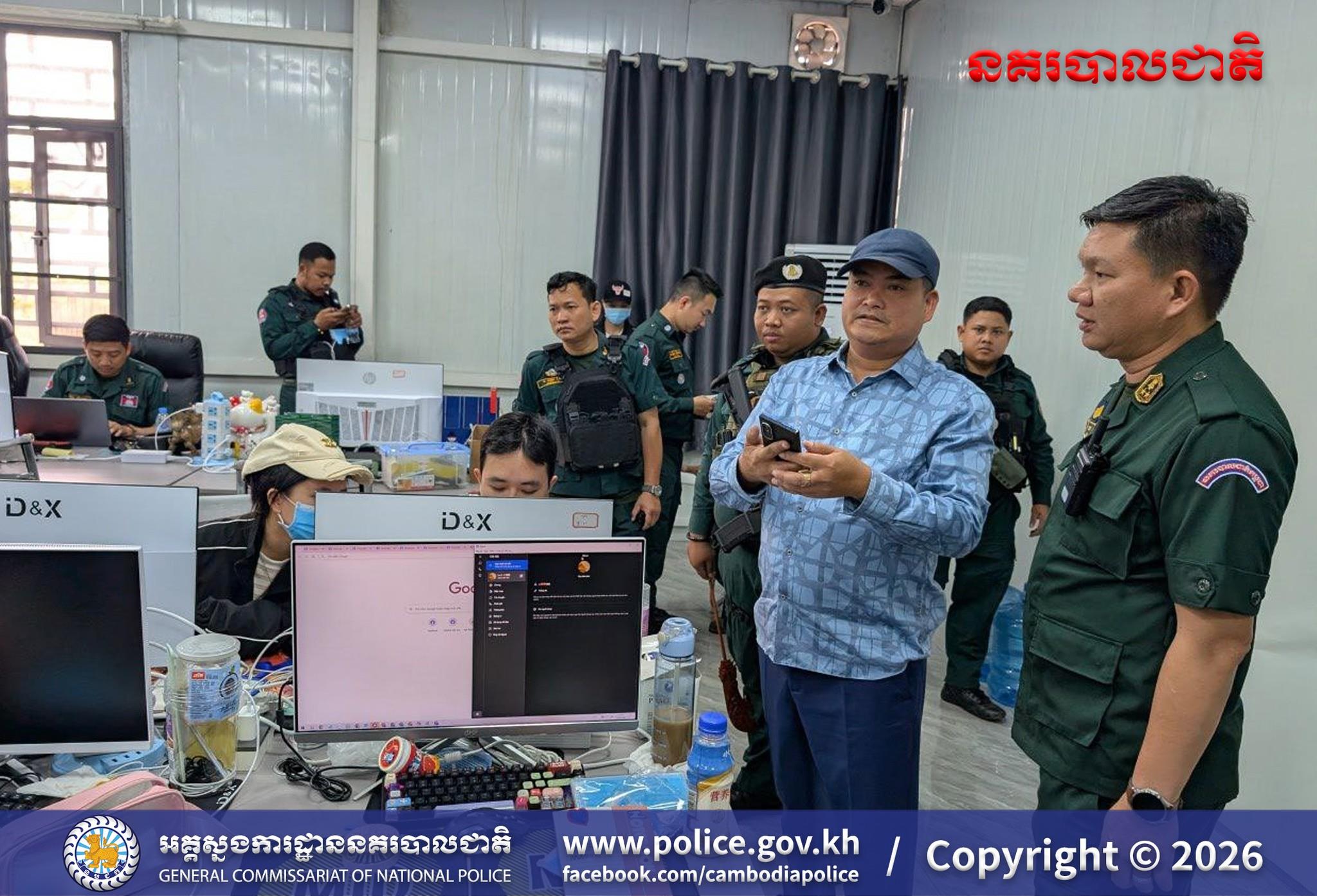 (បន្ទាយមានជ័យ)៖ ដោយអនុវត្តតាមបទបញ្ជារបស់នាយឧត្តមសេនីយ៍ ស ថេត អគ្គស្នងការនគរបាលជាតិ នៅព្រឹកថ្ងៃទី១២ ខែមីនា ឆ្នាំ២០២៦នេះ កម្លាំងជំនាញរបស់អគ្គស្នងការដ្ឋាននគរបាលជាតិ បានបើកប្រតិបត្តិការបង្ក្រាបទីតាំង Online Scam ទ្រង់ទ្រាយធំ ឈ្មោះ ឆាយណាបឹងបេង ស្ថិតនៅភូមិអូរអំពិល ឃុំទួលពង្រ ស្រុកម៉ាឡៃ ខេត្តបន្ទាយមានជ័យ។