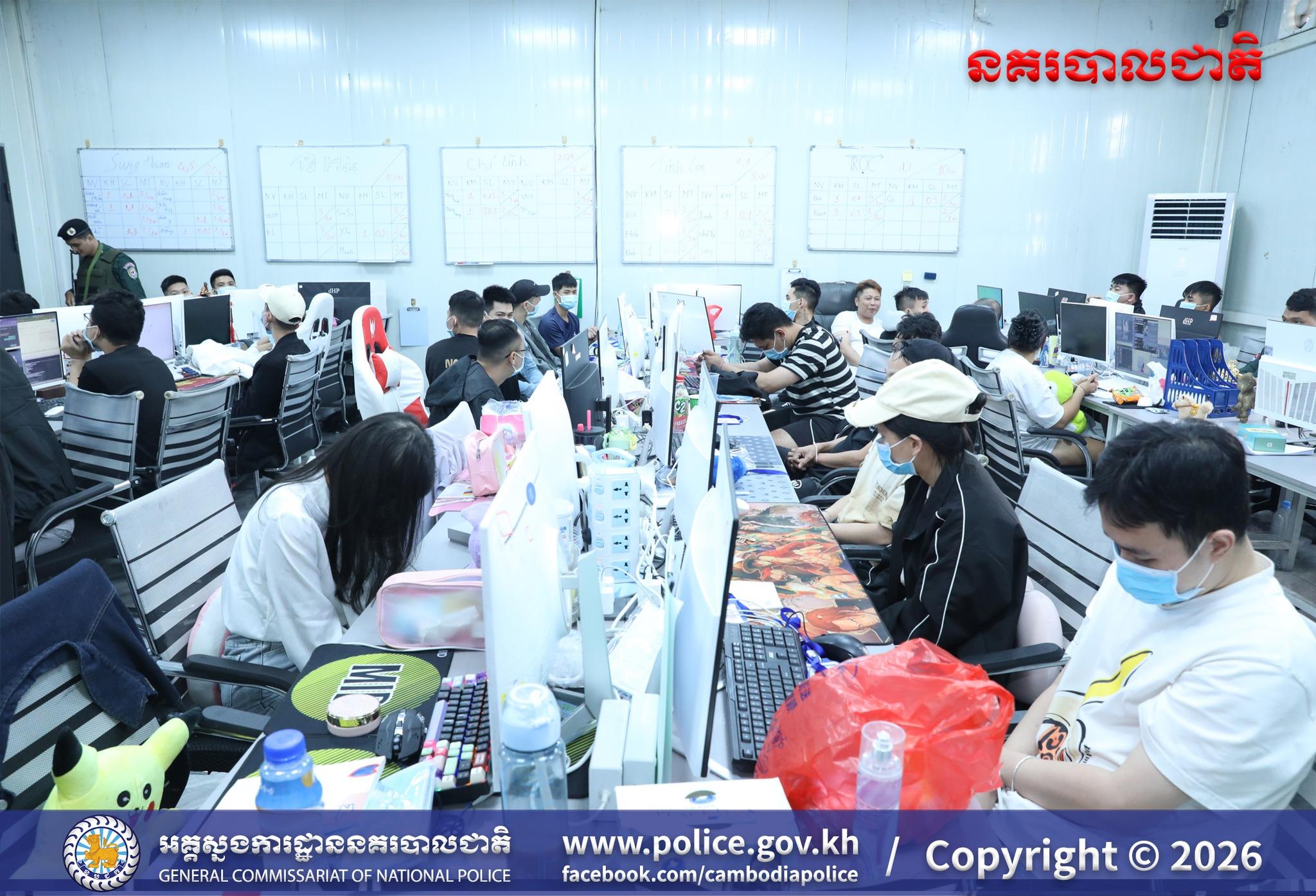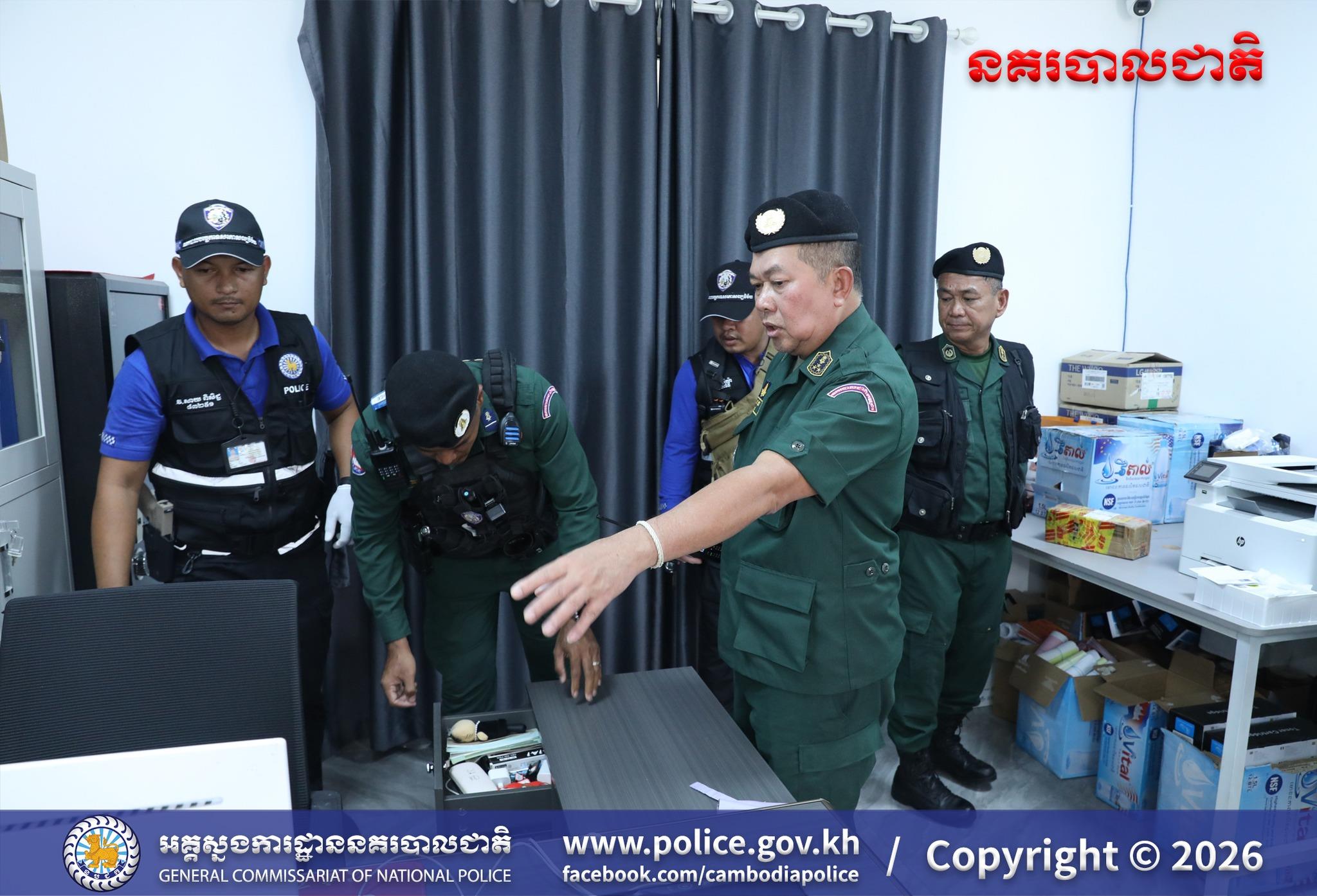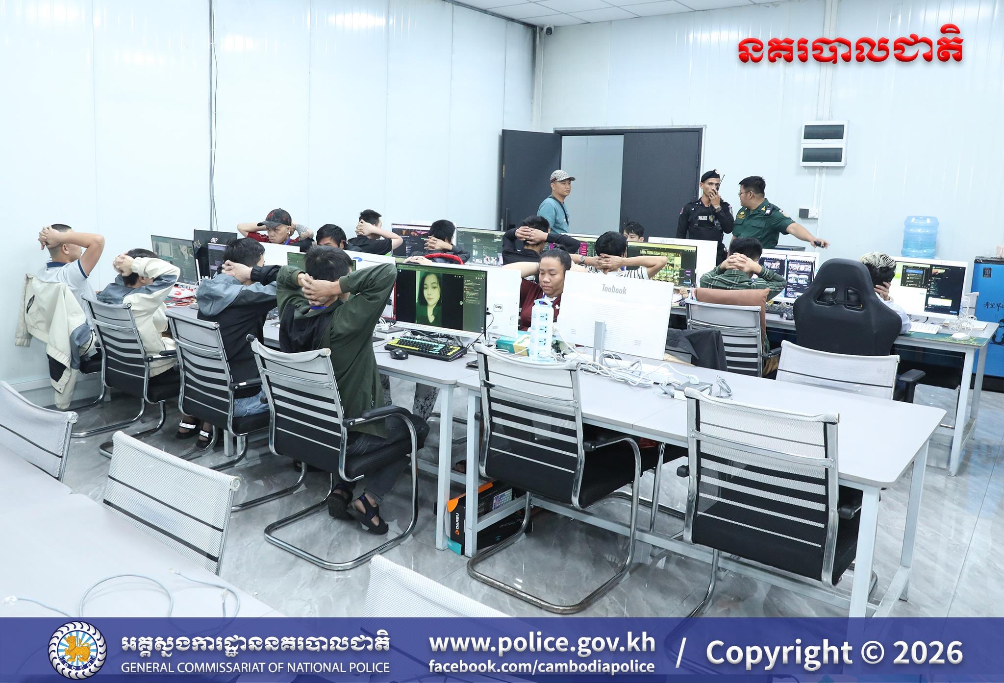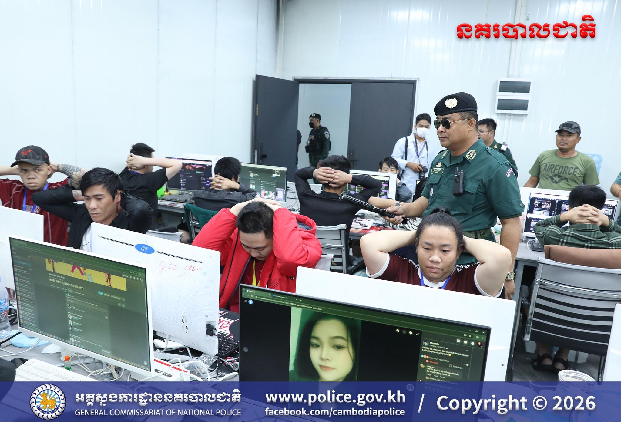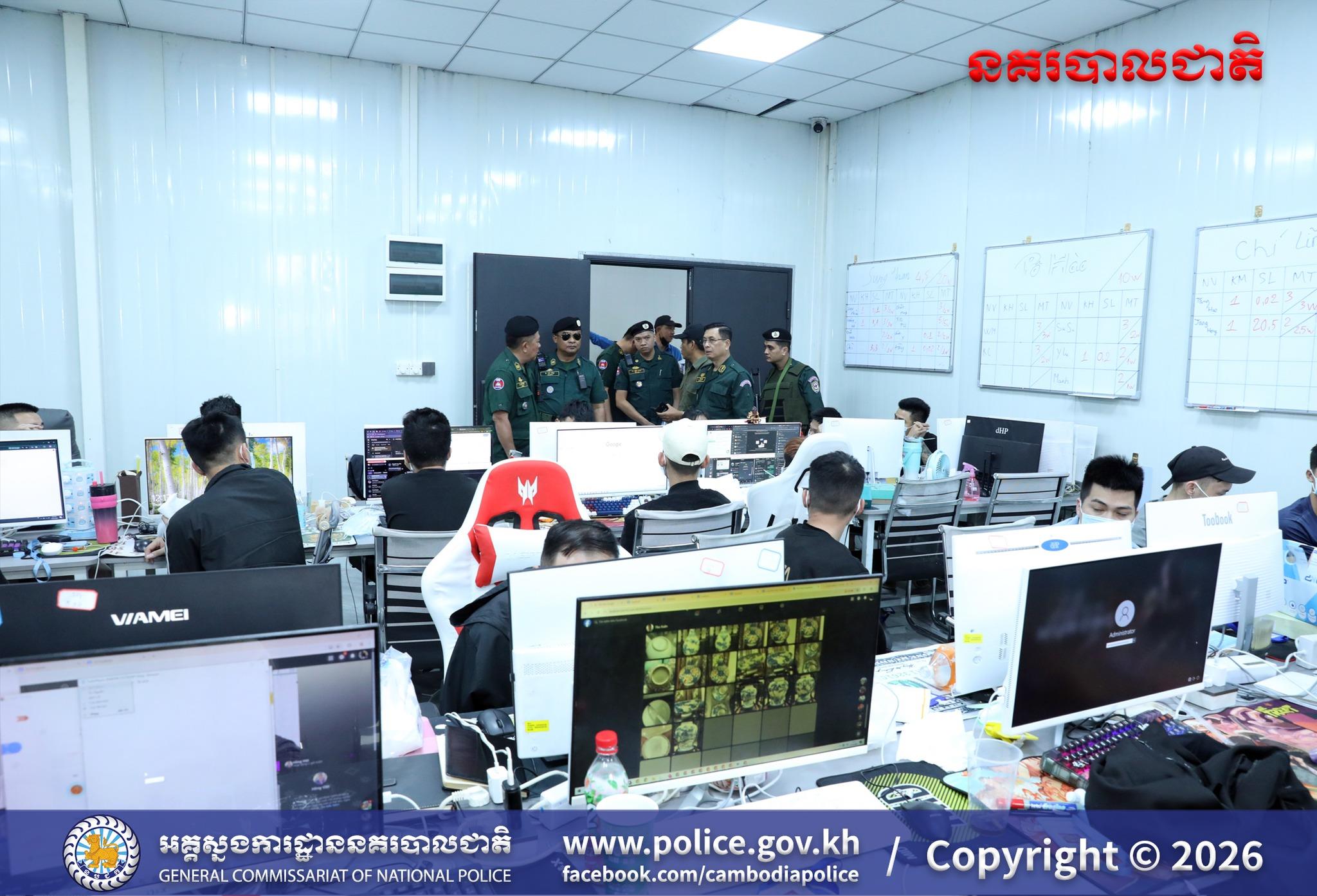 (បន្ទាយមានជ័យ)៖ ដោយអនុវត្តតាមបទបញ្ជារបស់នាយឧត្តមសេនីយ៍ ស ថេត អគ្គស្នងការនគរបាលជាតិ នៅព្រឹកថ្ងៃទី១២ ខែមីនា ឆ្នាំ២០២៦នេះ កម្លាំងជំនាញរបស់អគ្គស្នងការដ្ឋាននគរបាលជាតិ បានបើកប្រតិបត្តិការបង្ក្រាបទីតាំង Online Scam ទ្រង់ទ្រាយធំ ឈ្មោះ ឆាយណាបឹងបេង ស្ថិតនៅភូមិអូរអំពិល ឃុំទួលពង្រ ស្រុកម៉ាឡៃ ខេត្តបន្ទាយមានជ័យ។