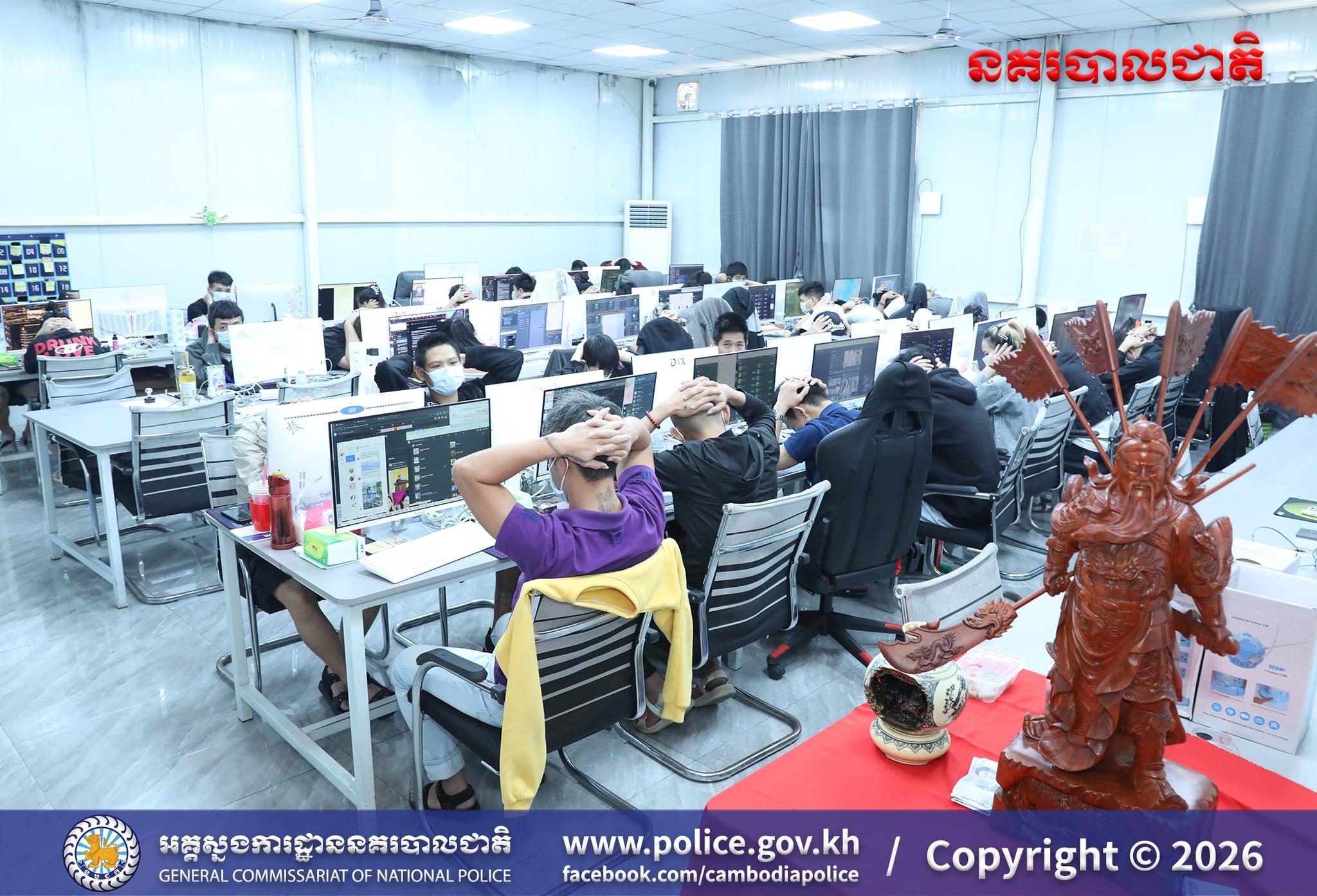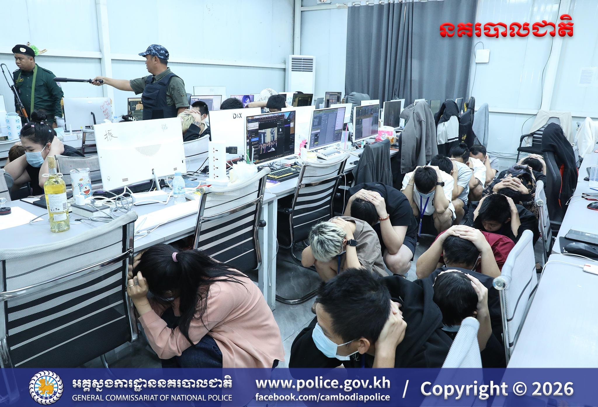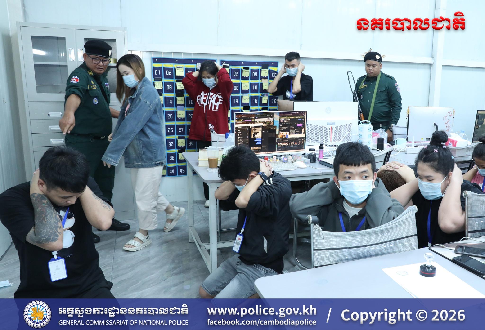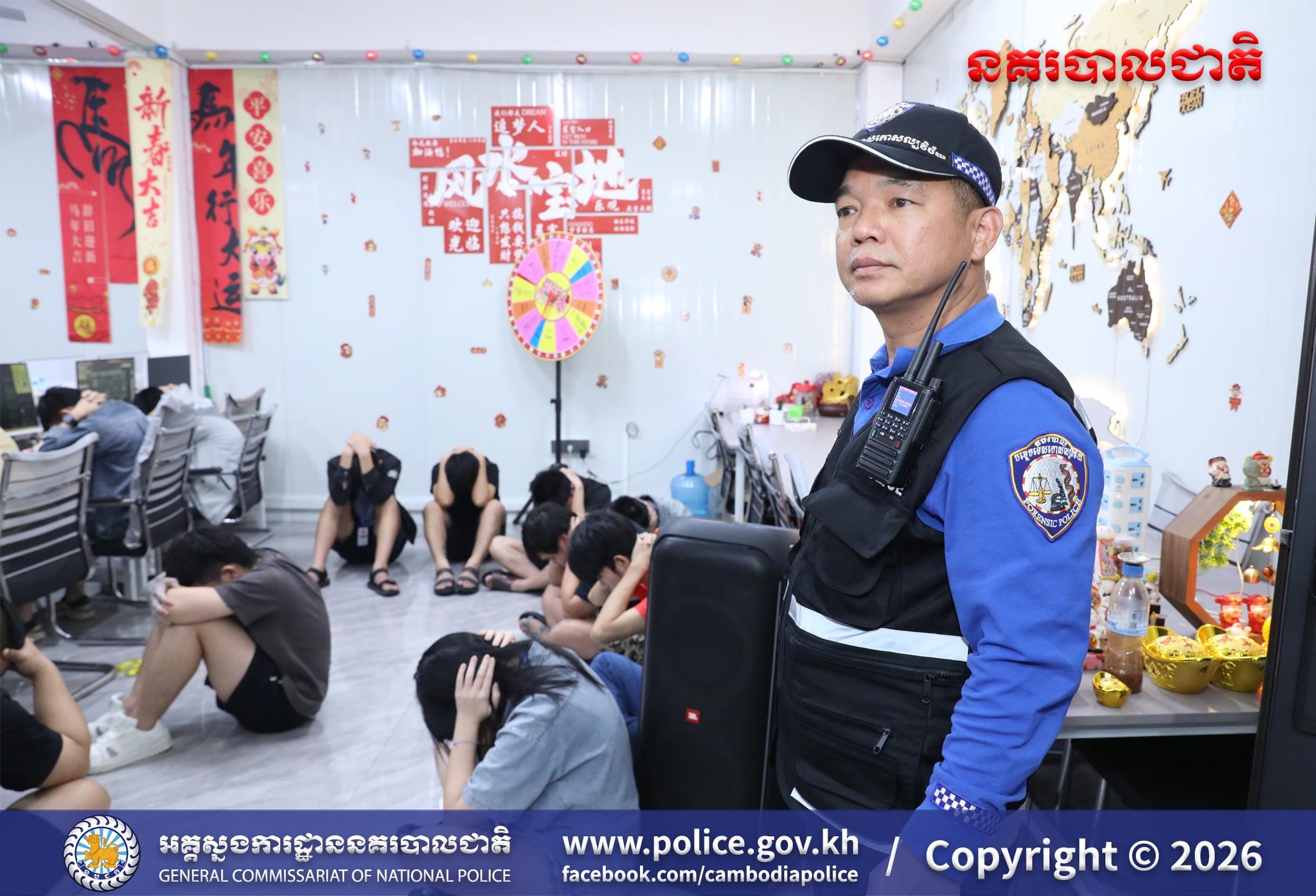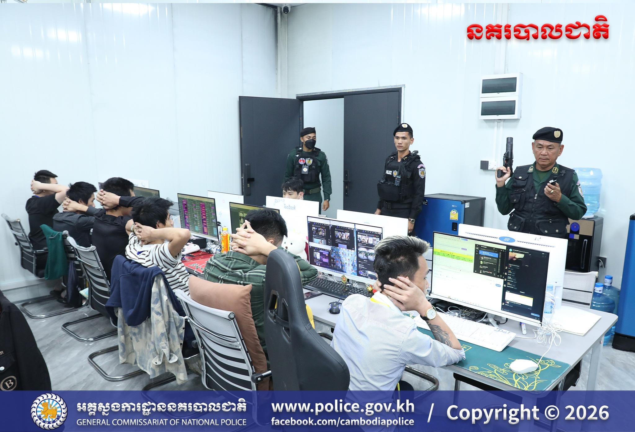(បន្ទាយមានជ័យ)៖ ដោយអនុវត្តតាមបទបញ្ជារបស់នាយឧត្តមសេនីយ៍ ស ថេត អគ្គស្នងការនគរបាលជាតិ នៅព្រឹកថ្ងៃទី១២ ខែមីនា ឆ្នាំ២០២៦នេះ កម្លាំងជំនាញរបស់អគ្គស្នងការដ្ឋាននគរបាលជាតិ បានបើកប្រតិបត្តិការបង្ក្រាបទីតាំង Online Scam ទ្រង់ទ្រាយធំ ឈ្មោះ ឆាយណាបឹងបេង ស្ថិតនៅភូមិអូរអំពិល ឃុំទួលពង្រ ស្រុកម៉ាឡៃ ខេត្តបន្ទាយមានជ័យ។