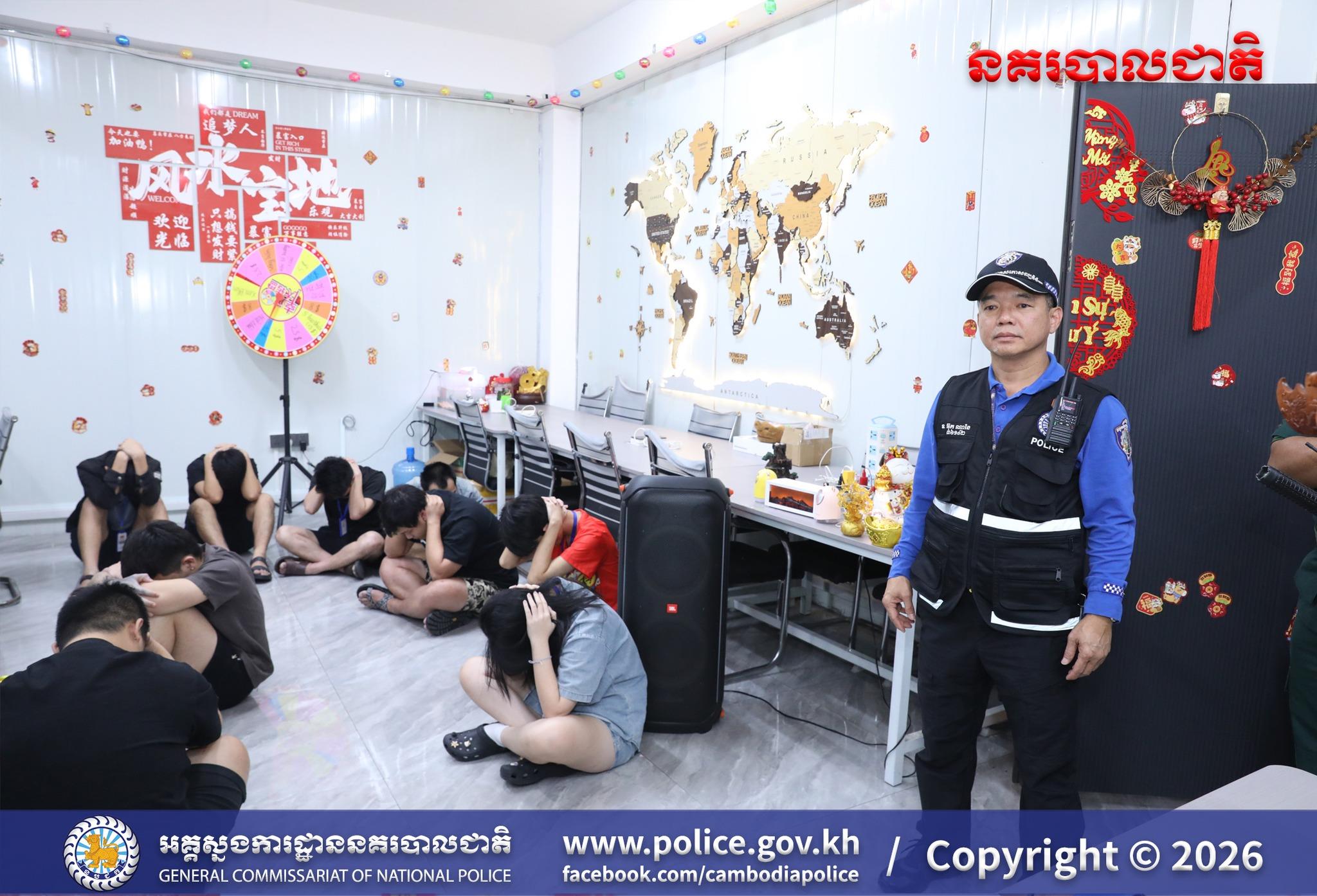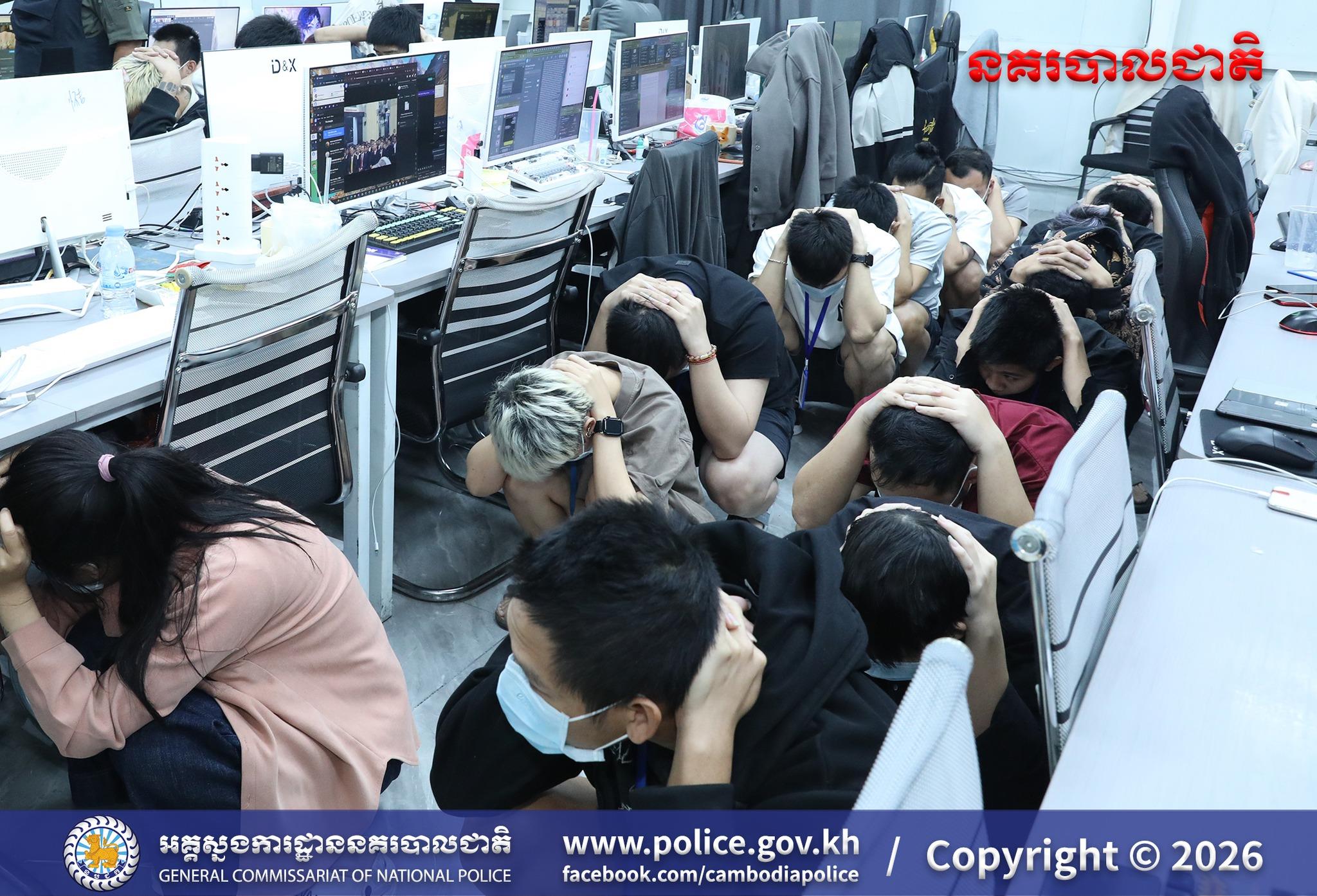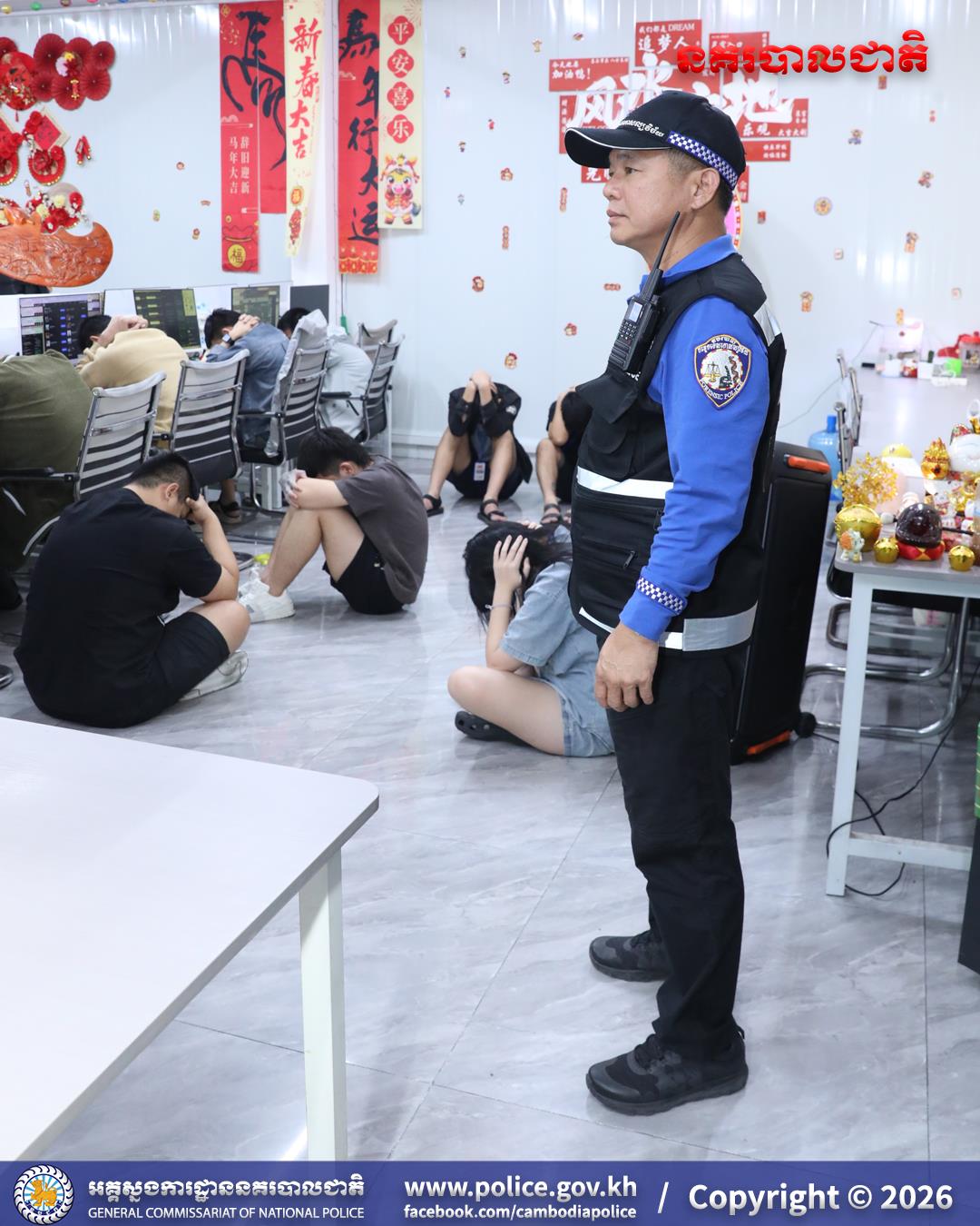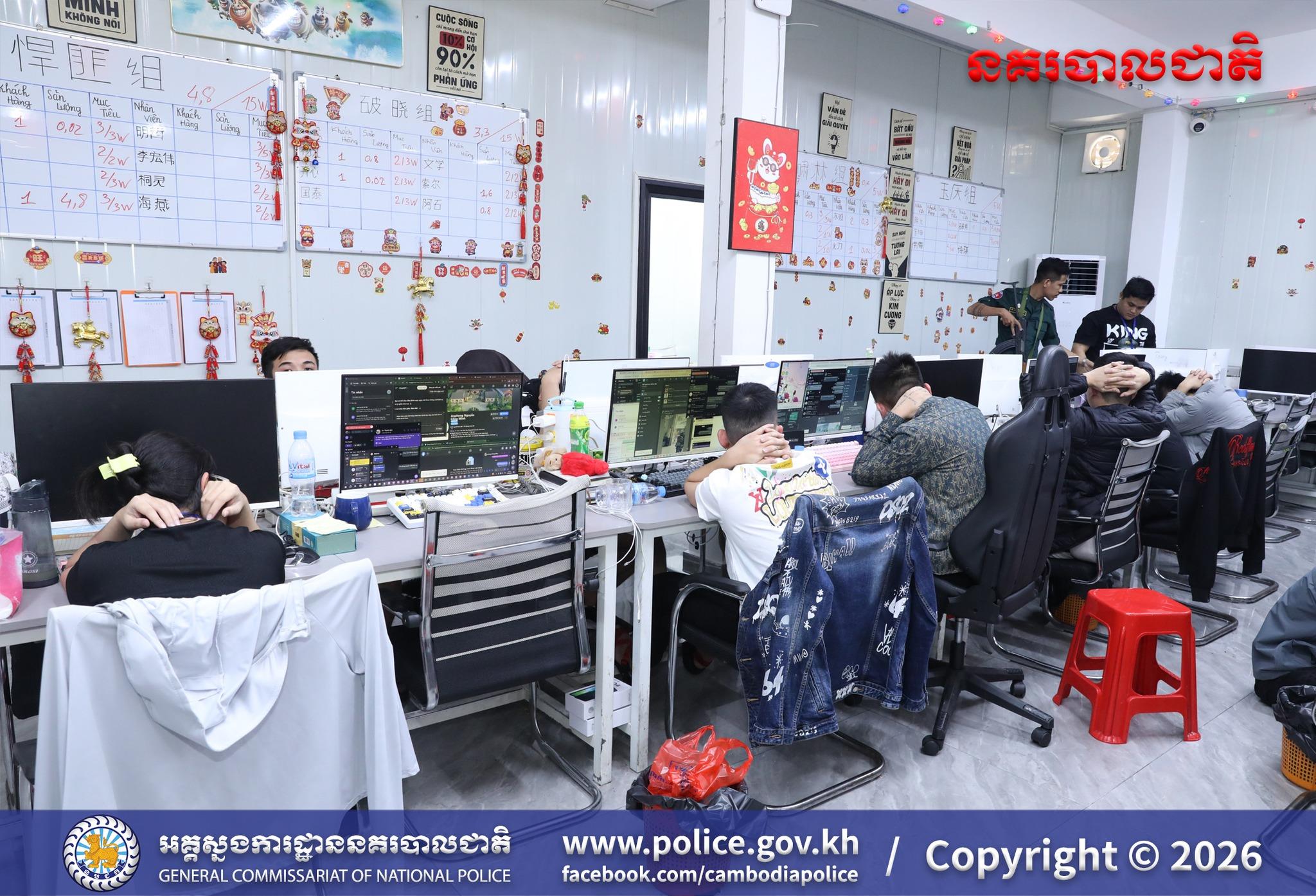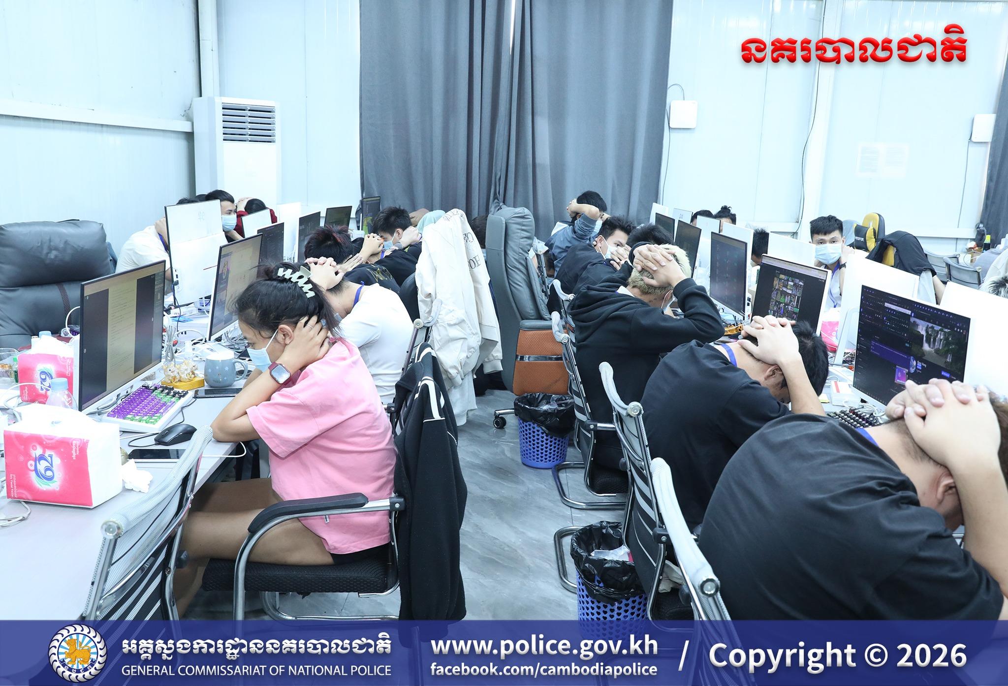 (បន្ទាយមានជ័យ)៖ ដោយអនុវត្តតាមបទបញ្ជារបស់នាយឧត្តមសេនីយ៍ ស ថេត អគ្គស្នងការនគរបាលជាតិ នៅព្រឹកថ្ងៃទី១២ ខែមីនា ឆ្នាំ២០២៦នេះ កម្លាំងជំនាញរបស់អគ្គស្នងការដ្ឋាននគរបាលជាតិ បានបើកប្រតិបត្តិការបង្ក្រាបទីតាំង Online Scam ទ្រង់ទ្រាយធំ ឈ្មោះ ឆាយណាបឹងបេង ស្ថិតនៅភូមិអូរអំពិល ឃុំទួលពង្រ ស្រុកម៉ាឡៃ ខេត្តបន្ទាយមានជ័យ។