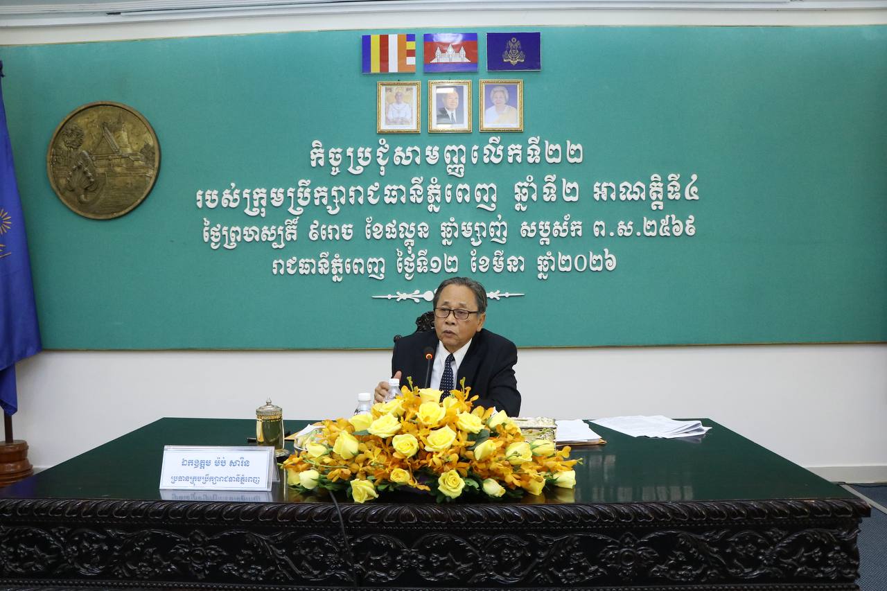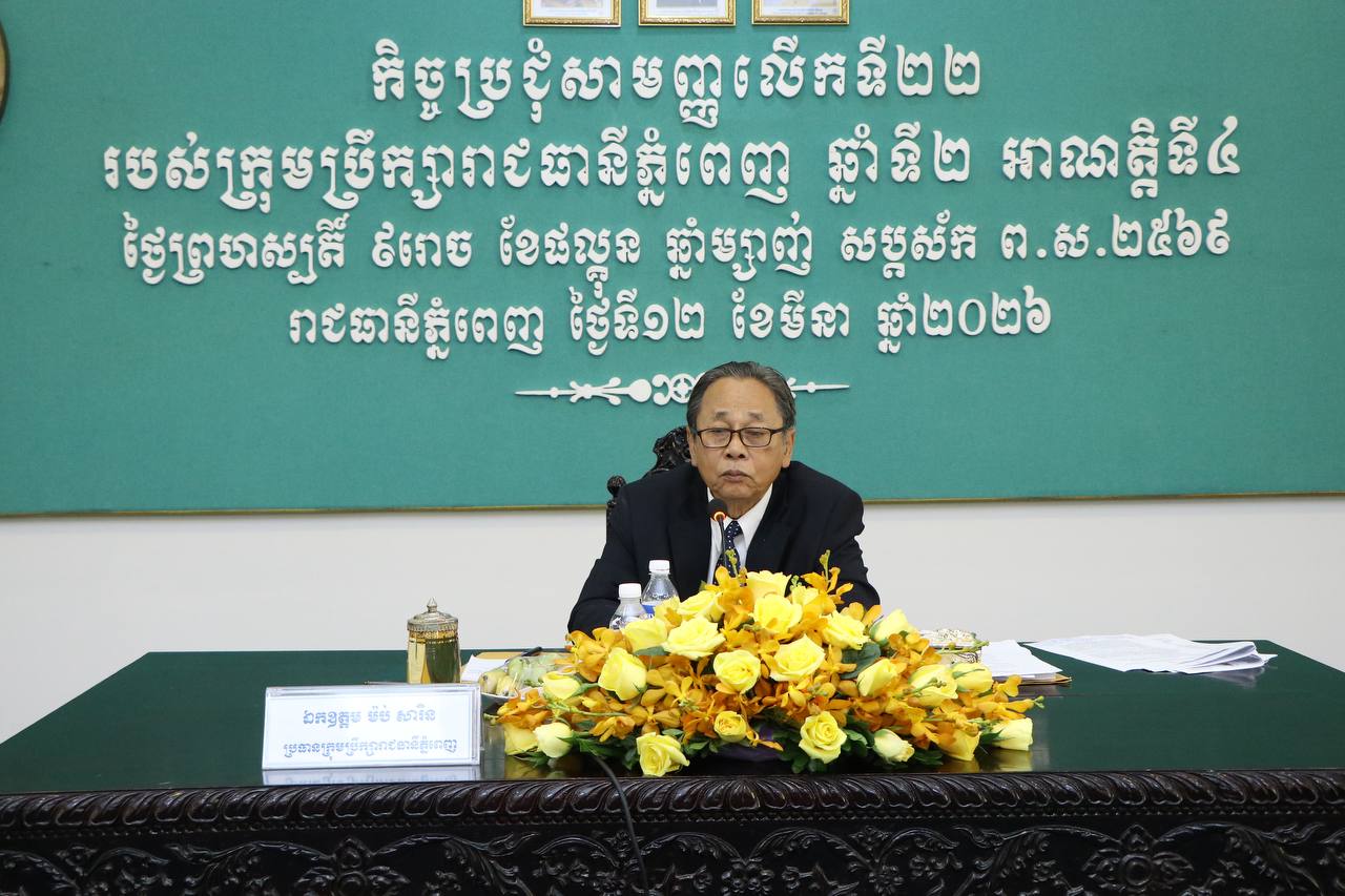 នេះបើតាមការបញ្ជាក់ឱ្យដឹង ក្នុងកិច្ចប្រជុំសាមញ្ញលើកទី២២ របស់ក្រុមប្រឹក្សារាជធានីភ្នំពេញ អាណត្តិទី៤ នាព្រឹកថ្ងៃទី១២ ខែមីនា ២០២៦នេះ ក្រោមវត្តមានលោក ម៉ប់ សារិន ប្រធានក្រុមប្រឹក្សារាជធានីភ្នំពេញ និងលោក ហួត ហៃ និងលោក ឆាយ វិរៈ អភិបាលរង តំណាងលោក ឃួង ស្រេង អភិបាលរាជធានីភ្នំពេញ នៅសាលារាជធានីភ្នំពេញ។