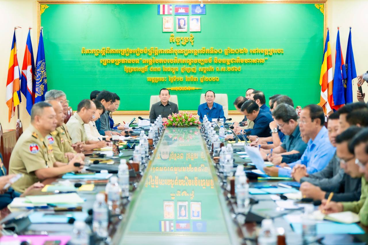 (ក្រចេះ)៖ លោក ហួត ហាក់ រដ្ឋមន្ត្រីក្រសួងទេសចរណ៍ និងជាប្រធានគណៈកម្មការអន្តរក្រសួងរៀបចំបុណ្យទន្លេ លើកទី១០ ឆ្នាំ២០២៦ នៅខេត្តក្រចេះ រួមជាមួយលោក វ៉ា ថន អភិបាលនៃគណៈអភិបាលខេត្តក្រចេះ នៅថ្ងៃទី១២ ខែមីនា ឆ្នាំ២០២៦ បានអញ្ជើញដឹកនាំកិច្ចប្រជុំគណៈកម្មការអន្តរក្រសួង ដើម្បីត្រួតពិនិត្យវឌ្ឍនភាពការងារត្រៀមរៀបចំបុណ្យទន្លេ នៅខេត្តក្រចេះ ដែលនឹងប្រព្រឹត្តទៅនៅថ្ងៃទី២៧-២៨-២៩ ខែមីនា ឆ្នាំ២០២៦ ឆាប់ៗខាងមុខ។