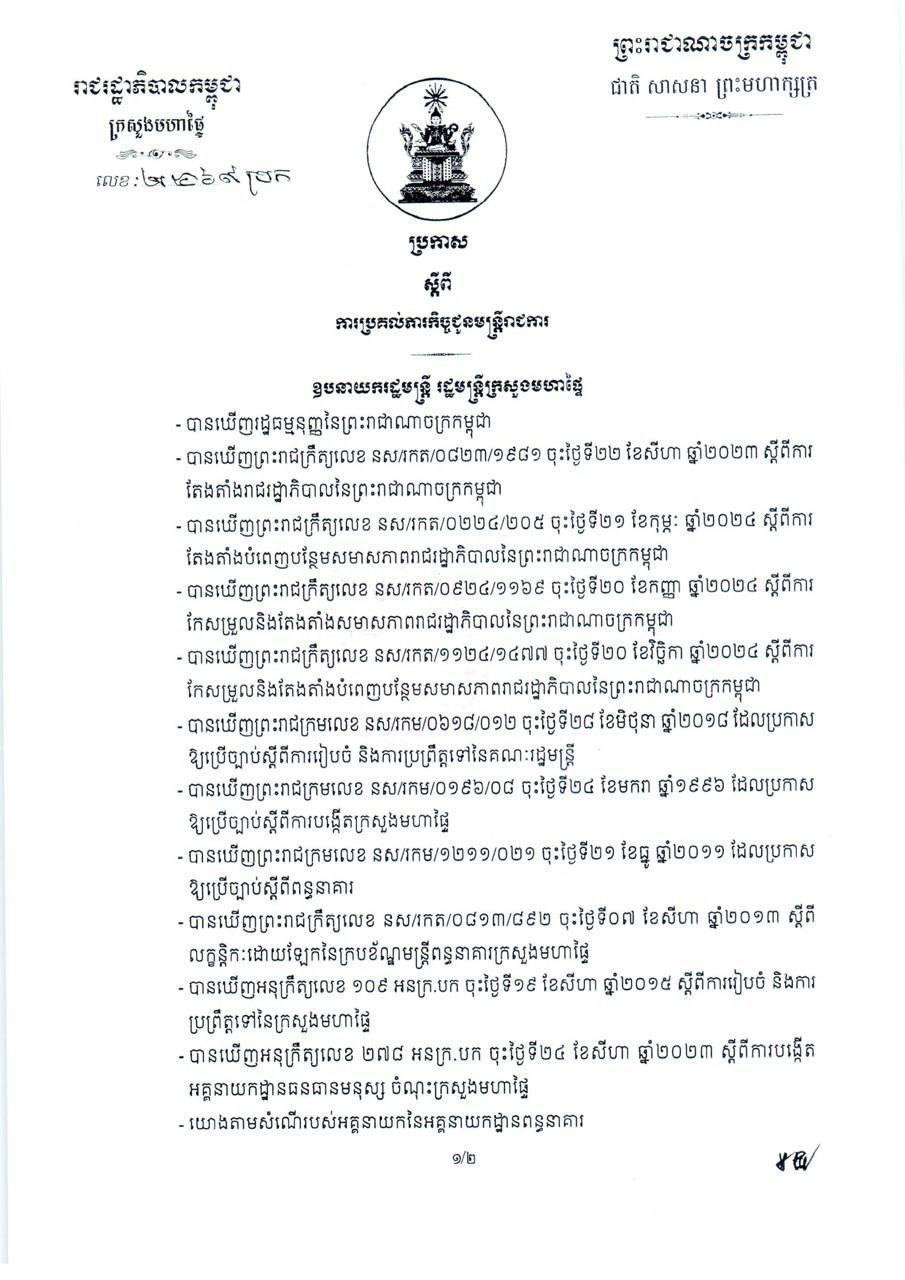ខាងក្រោមនេះ ជាប្រកាសរបស់ក្រសួងមហាផ្ទៃ៖