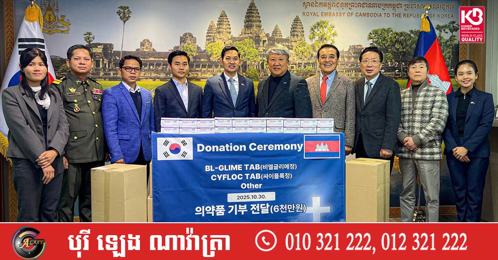 ទូតកម្ពុជាប្រចាំកូរ៉េខាងត្បូង ទទួលជំនួយឱសថពីក្រុមហ៊ុនកូរ៉េ ដើម្បីជួយកងទ័ពជួរមុខ និងជនភៀសសឹកនៅតាមព្រំដែនកម្ពុជា-ថៃ