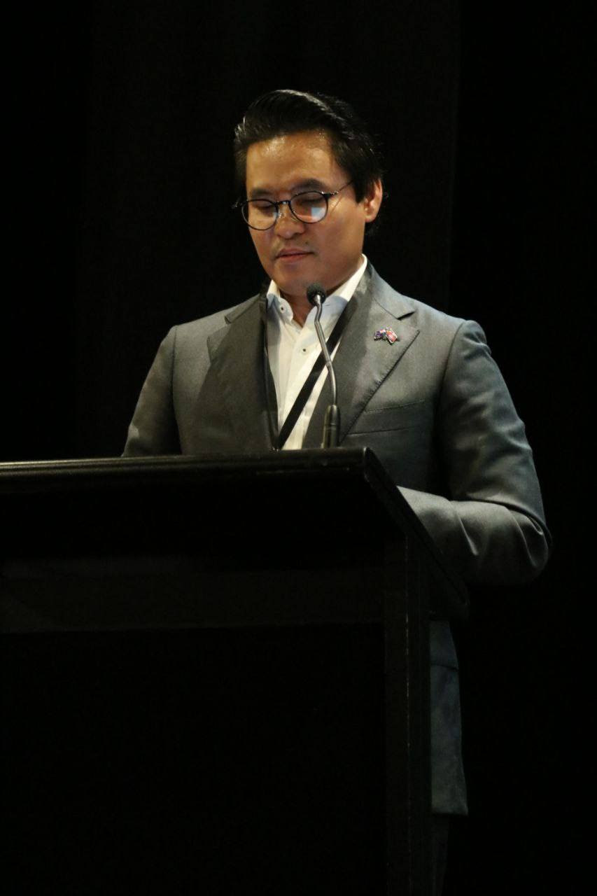 បណ្ឌិត កៅ ថាច អមដំណើរ ឧបនាយករដ្ឋមន្ត្រី ប្រាក់ សុខុន ក្នុងពិធីសំណេះសំណាលជាមួយសហគមន៍ខ្មែរ និងនិស្សិតនៅប្រទេសណូវែលសេឡង់