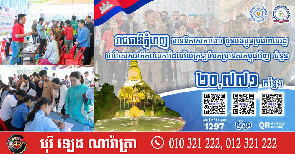 ក្រសួងការងារ៖ រាជធានីភ្នំពេញ មានឱកាសការងារជាង ២ម៉ឺនកន្លែង កំពុងរង់ចាំអតីតពលករត្រឡប់មកពីថៃ និងអ្នកកំពុងស្វែងរកការងារធ្វើ