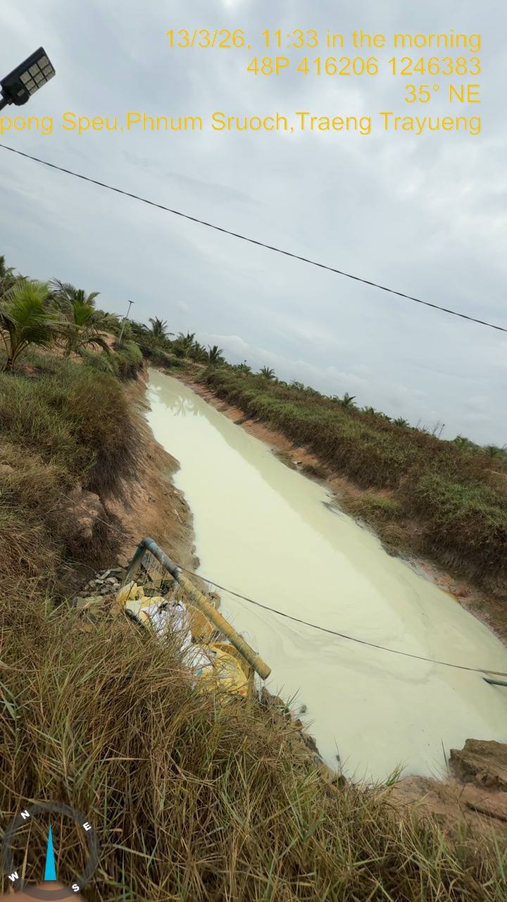 (កំពង់ស្ពឺ)៖ រោងចក្រកែច្លៃផ្លែស្វាយ របស់ក្រុមហ៊ុន Khun Da Sambath Co., Ltd. មួយកន្លែងស្ថិតនៅជាប់ផ្លូវល្បឿនលឿន ចន្លោះគីឡូម៉ែត្រលេខ៧៣-៧៤ ក្នុងឃុំត្រែងត្រយឹង ស្រុកភ្នំស្រួច ខេត្តកំពង់ស្ពឺ ត្រូវបានរកឃើញដំណើរការដោយគ្មានច្បាប់ពាក់ព័ន្ធវិស័យបរិស្ថាន និងបានបង្ហូរកាកសំណល់រាវចេញក្រៅរោងចក្របង្កឱ្យប៉ះពាល់បរិស្ថាន និងជះក្លិនស្អុយប៉ះពាល់ដល់ការរស់នៅរបស់ប្រជាពលរដ្ឋ។