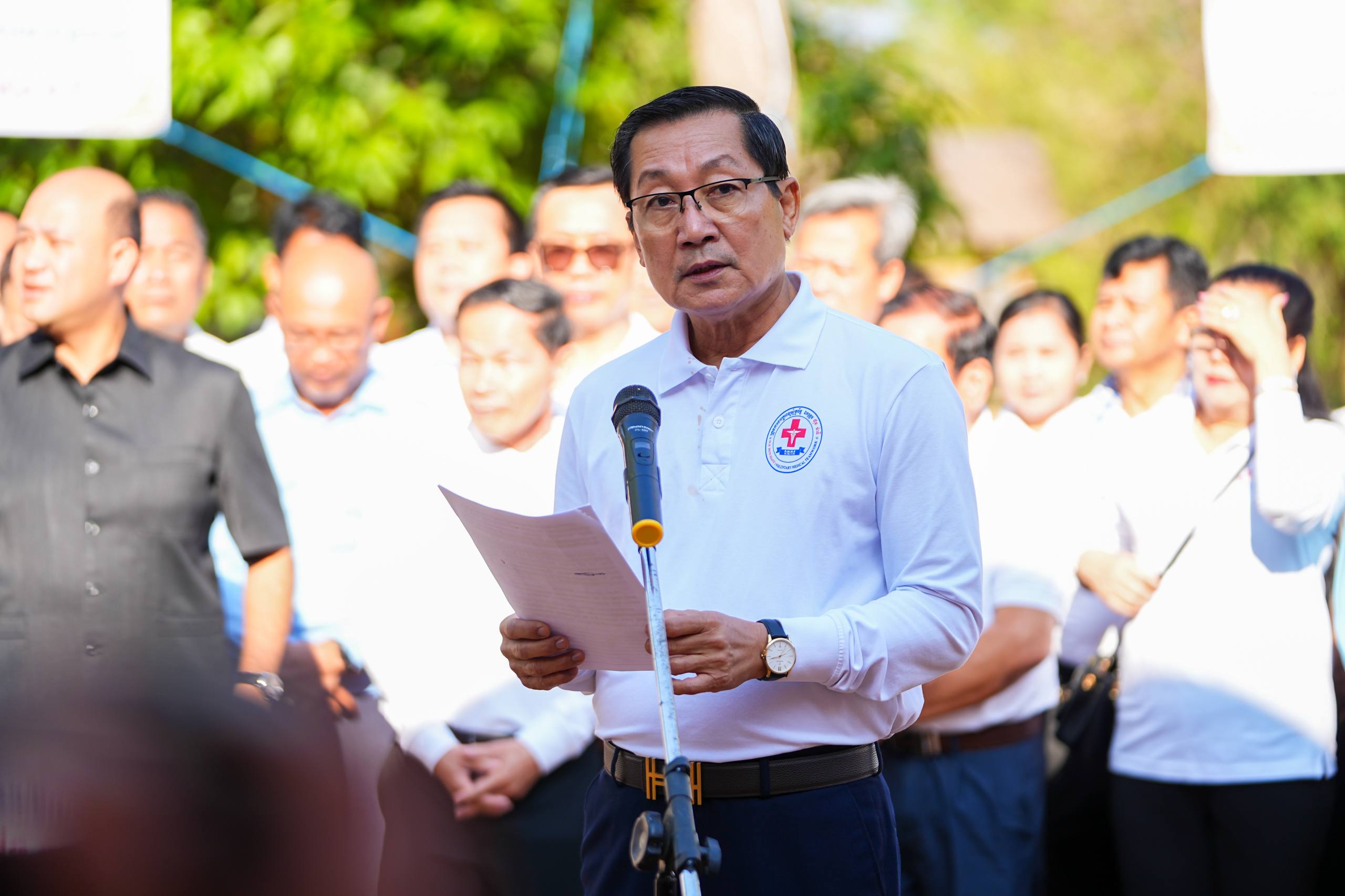 លោកវេជ្ជបណ្ឌិត ហុក ត្រី អនុប្រធានប្រតិបត្តិទទួលបន្ទុកប្រធានប្រតិបត្តិក្រុមការងារគ្រូពេទ្យស្ម័គ្រចិត្ត ឯកឧត្តម ហ៊ុន ម៉ានី ប្រចាំខេត្តកំពង់ស្ពឺ បានឡើងថ្លែងរបាយការណ៍សង្ខេប ស្ដីពីការចុះពិនិត្យ និងព្យាបាលជំងឺ ជូនដល់ប្រជាពលរដ្ឋ របស់គ្រូពេទ្យស្ម័គ្រចិត្ត គិតចាប់តាំងពីឆ្នាំ២០១២ រហូតមកដល់ពេលនេះ បានចំនួន ២,៤៦១លើកហើយនៅតាមបណ្តារាជធានី-ខេត្តទាំង២៥។ ដោយឡែកថ្ងៃនេះ ជាលើកទី៣២៦ ដែលក្រុមគ្រូពេទ្យស្ម័គ្រចិត្តបានចុះពិនិត្យ និងព្យាបាលជំងឺដោយឥតគិតថ្លៃនៅក្នុងខេត្តកំពង់ស្ពឺជូនប្រជាពលរដ្ឋប្រមាណ៣០០០ នាក់។