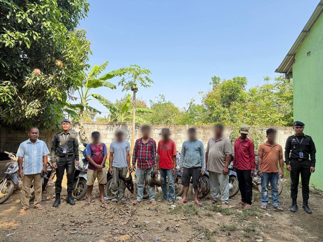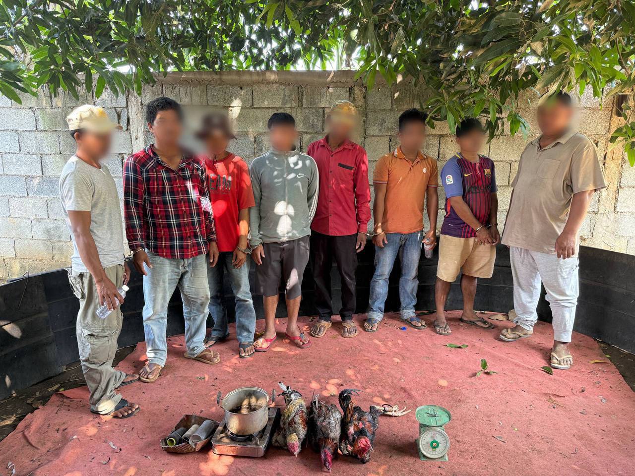 ដោយបានចាប់យកវត្ថុតាងរួមមាន៖ ម៉ូតូចំនួន ០៩គ្រឿង, ទូរស័ព្ទចំនួន ០៦គ្រឿង, មាន់ជល់ចំនួន ០៣ក្បាល ព្រមទាំងជញ្ជីងថ្លឹងមាន់ចំនួន០១ផងដែរ។