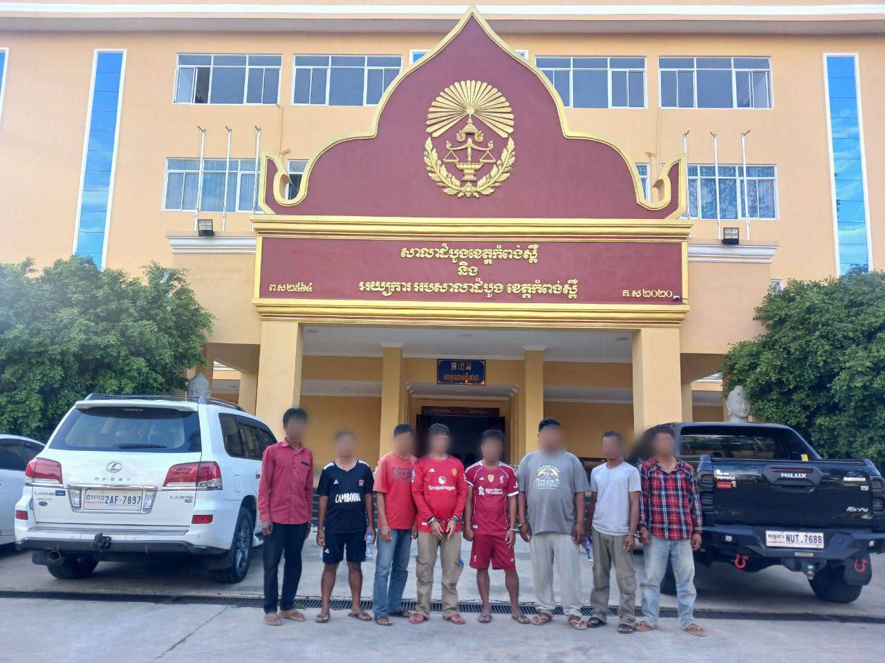 កម្លាំងអាវុធហត្ថខេត្តកំពង់ស្ពឺ បង្ក្រាបកន្លែងជល់មាន់នៅក្រុងច្បារមន ឃាត់មនុស្ស៨នាក់, តុលាការចេញដីកាឃុំខ្លួនដាក់ពន្ធនាគារ