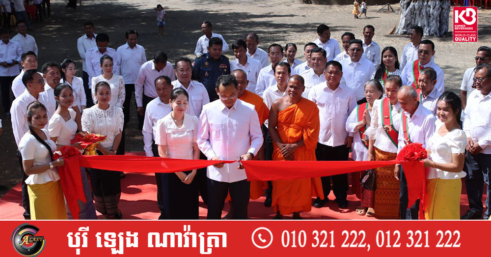 លោកបានបន្តថា ពិធីកាត់ខ្សែបូសម្ពោធឆ្លងឧបដ្ឋានសាលា និងសមិទ្ធផលនានា នាពេលនេះ បានឆ្លុះបញ្ចាំងឲ្យឃើញអំពីវឌ្ឍនភាព ជំនឿសាសនា និងការគោរពប្រណិប័តដ៏ជ្រាលជ្រៅ ចំពោះវិស័យព្រះពុទ្ធសាសនា ដែលជាសាសនារបស់រដ្ឋ ព្រមទាំងបង្ហាញឲ្យឃើញនូវស្មារតីសាមគ្គីភាព មិត្តភាព និងការគាំទ្ររបស់បងប្អូនប្រជាពលរដ្ឋយើងចំពោះកិច្ចខិតខំប្រឹងប្រែងរបស់រាជរដ្ឋាភិបាលក្នុងការអភិវឌ្ឍប្រទេសជាតិទាំងផ្នែកពុទ្ធចក្រ និងអាណាចក្រ។