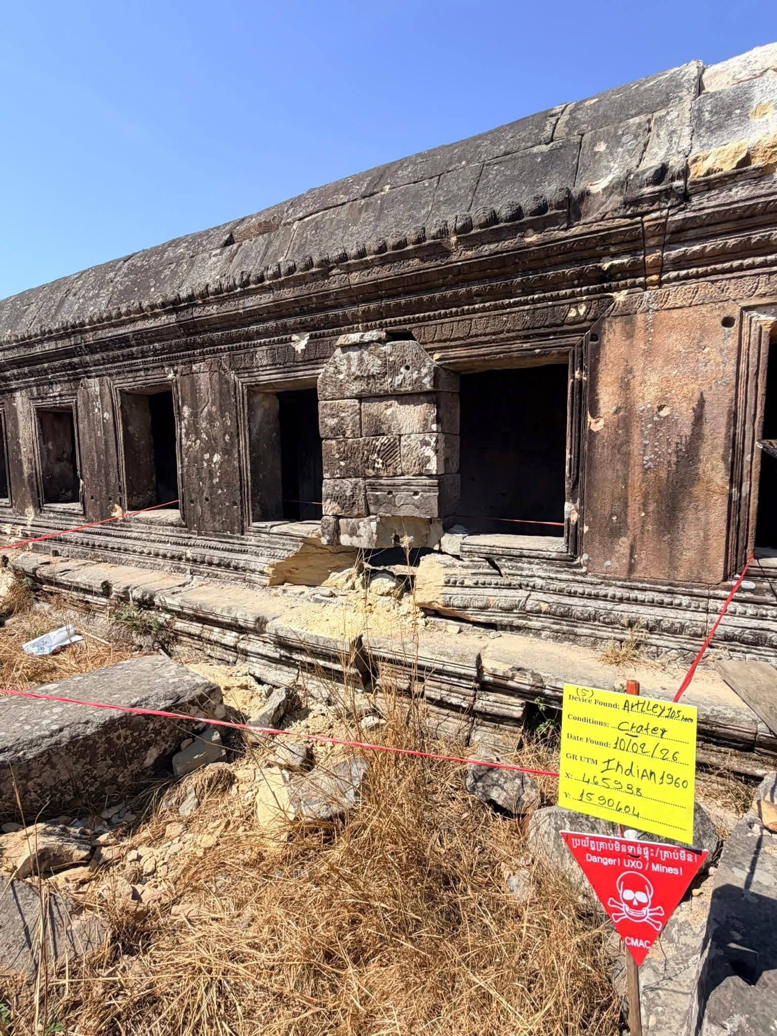 បើតាមលោក ចេង សេងលីម អនុប្រធានកងឯកភាពកំចាត់មីន (ស៉ីម៉ាក់) បានឱ្យដឹងថា ក្រោយបទឈប់បាញ់ចូលជាធរមាន ក្រុមមន្ត្រីស៉ីម៉ាក់បានរកឃើញគ្រាប់បែកគ្រប់ប្រភេទជាង ១,៣០០គ្រាប់ ដែលយោធាថៃ បានបាញ់ស្រោចមកលើប្រាង្គប្រាសាទព្រះវិហារ ខណៈមន្ត្រីជំនាញកំពុងរុករកបន្ថែមទៀត។ នៅកំឡុងសង្គ្រាមឈ្លានពានរបស់យោធាថៃ មកលើទឹកដីកម្ពុជា ដែលមានរយៈពេល២១ថ្ងៃ កាលពីខែធ្នូ ឆ្នាំ២០២៥ យោធាថៃ បានប្រើប្រាស់គ្រាប់យុទ្ធភណ្ឌធុនធ្ងន់ជាច្រើន ដោយបាញ់ស្រោចមកលើប្រាង្គប្រាសាទព្រះវិហារ រួមមានគ្រាប់បែកទម្លាក់ពីលើយន្តហោះ ដ្រូននាំគ្រាប់បែកទម្លាក់ ប្រភេទគ្រាប់បែកបាញ់ផ្លោងចេញពីកាំភ្លើងធំ និងរថក្រោះជាដើម។