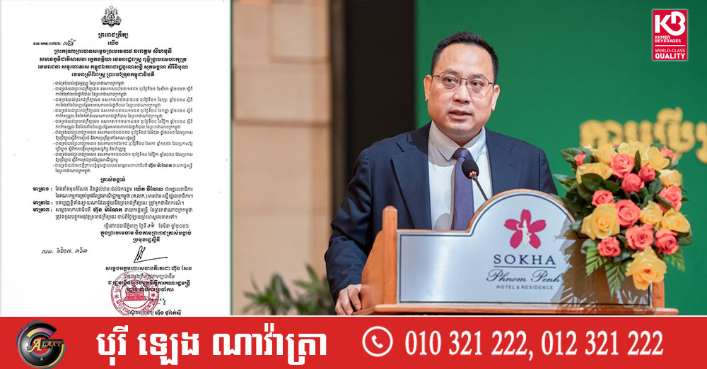 (ភ្នំពេញ)៖ សម្តេចតេជោ ហ៊ុន សែន ប្រមុខរដ្ឋស្តីទី បានចេញព្រះរាជក្រឹត្យតែងតំាងមុខតំណែង និងផ្តល់ឋានៈដល់លោក យ៉េត វីណែល ជាអគ្គលេខាធិការ នៃអគ្គលេខាធិការដ្ឋានគ្រប់គ្រងល្បែងពាណិជ្ជកម្មកម្ពុជា មានឋានៈស្មើ រដ្ឋលេខាធិការ។
