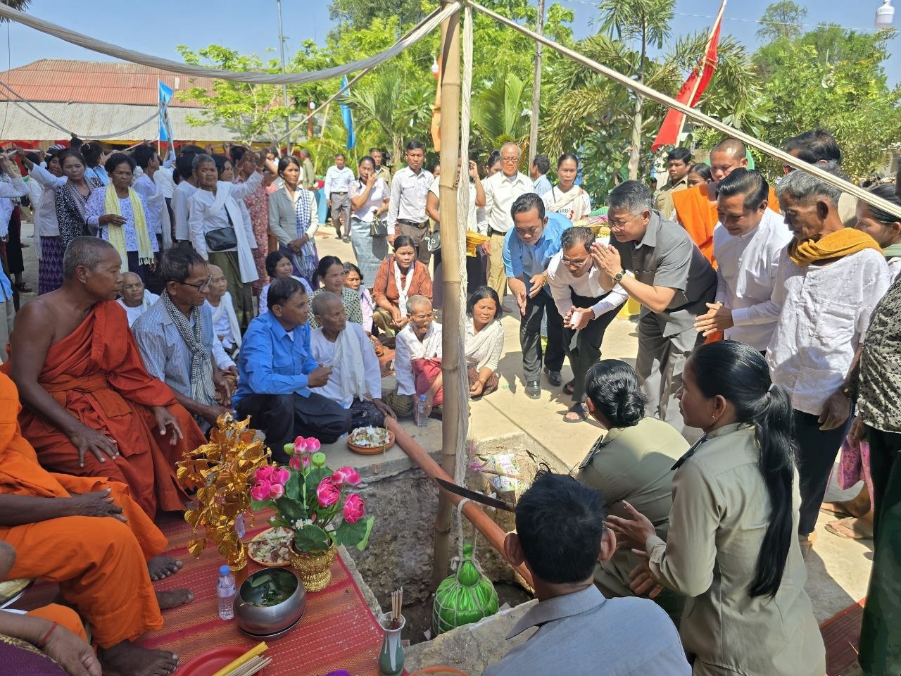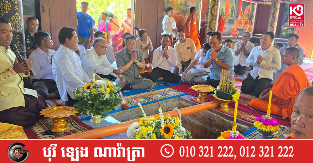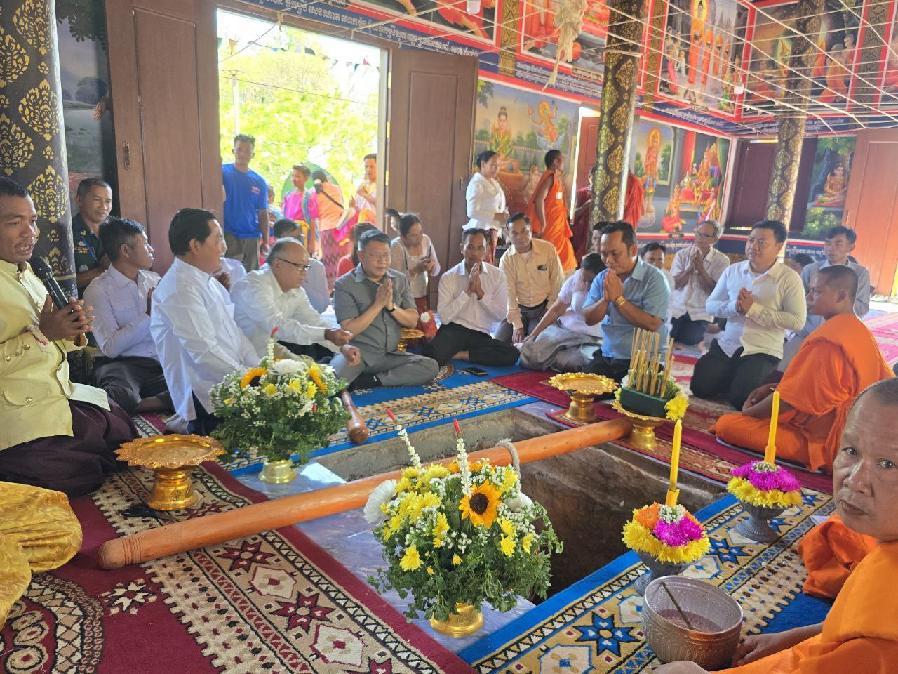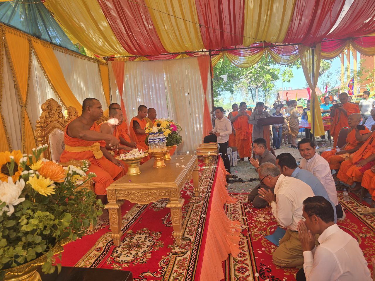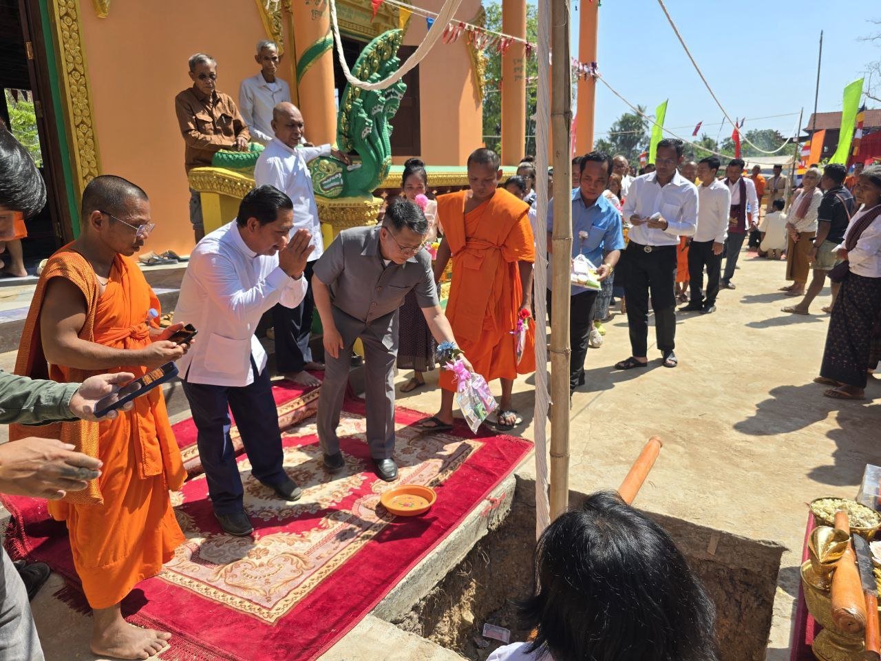 (ព្រះវិហារ)៖ លោក អ៊ុក គឹមសាន អភិបាលរងខេត្តព្រះវិហារ និងជាប្រធានក្រុមការងាររាជរដ្ឋាភិបាលចុះមូលដ្ឋានស្រុករវៀង តំណាងលោក គីម រិទ្ធី អភិបាលខេត្ត នៅព្រឹកថ្ងៃទី១៦ ខែមីនា ឆ្នាំ២០២៦ បានអញ្ជើញចូលរួមក្នុងពិធី បុណ្យបញ្ចុះខណ្ឌសីមាព្រះវិហារ វត្តចន្ទរង្សីនិមិត្ត ហៅវត្តឈ្នួន ស្ថិតនៅភូមិឈ្នួន ឃុំរួសរាន់ ស្រុករវៀង ខេត្តព្រះវិហារ ដោយមានការចូលរួមពីព្រះសង្ឃ ថ្នាក់ដឹកនាំមន្ទីរ-អង្គភាពជុំវិញខេត្ត អាជ្ញាធរមូលដ្ឋាន ព្រមទាំងពុទ្ធបរិស័ទជាច្រើនកុះករ។