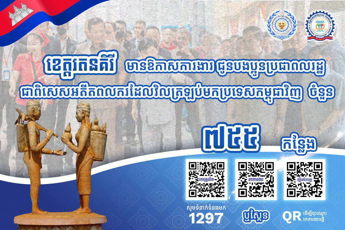ក្រសួងការងារ៖ ខេត្តចំនួន៤ នៅភូមិភាគឦសាន្ត មានឱកាសការងារជាង ៣ពាន់កន្លែង កំពុងរង់ចាំអតីតពលករត្រឡប់មកពីថៃ និងអ្នកកំពុងស្វែងរកការងារធ្វើ