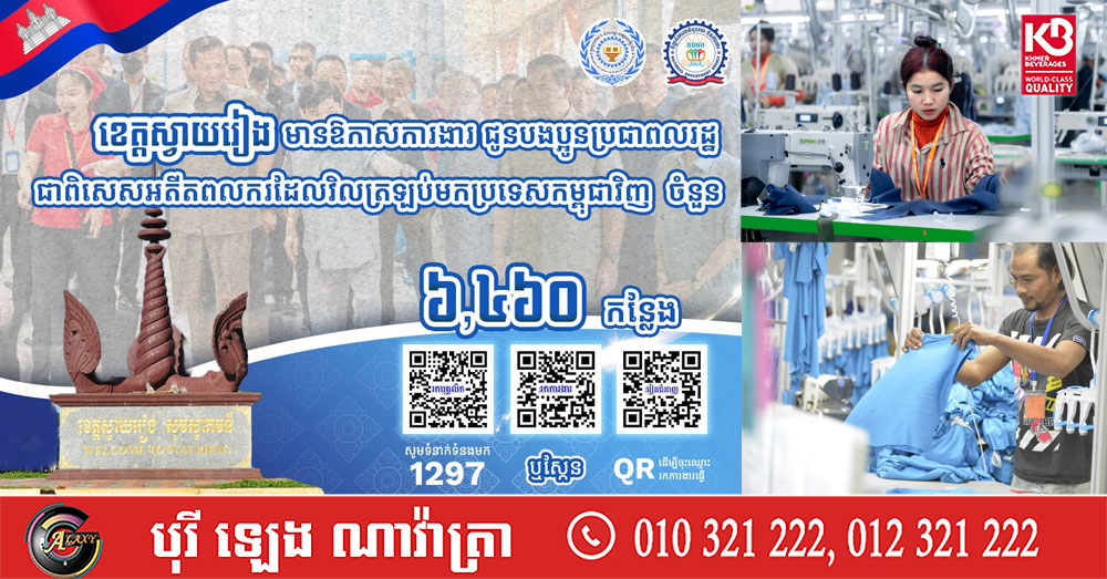 ក្រសួងការងារ៖ ខេត្តស្វាយរៀង មានឱកាសការងារជាង ៦ពាន់កន្លែង កំពុងរង់ចាំអតីតពលករត្រឡប់មកពីថៃ និងអ្នកកំពុងស្វែងរកការងារធ្វើ