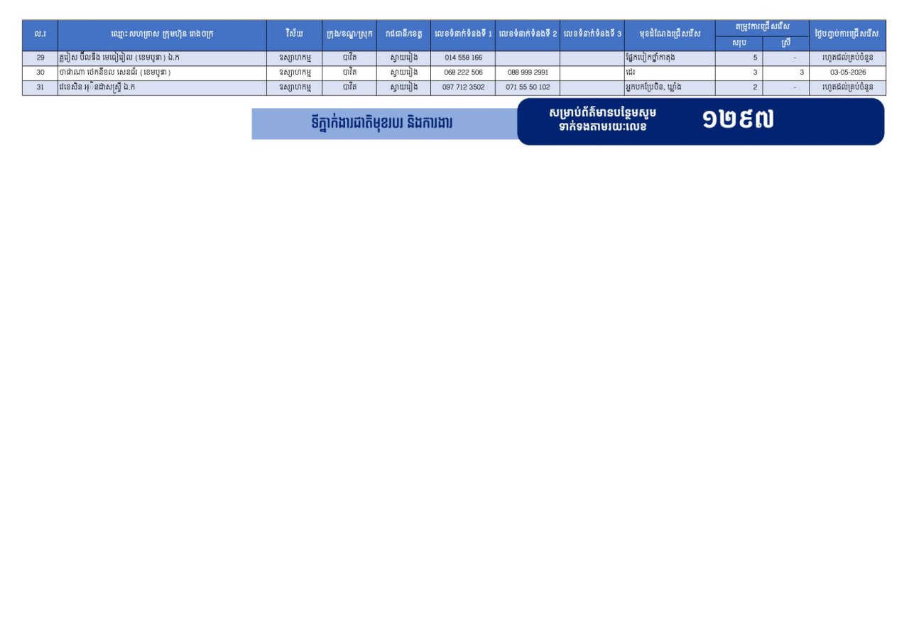 ជាមួយគ្នានេះ ក្រៅពីទំនាក់ទំនងផ្ទាល់ជាមួយក្រុមហ៊ុន រោងចក្រ សហគ្រាស អ្នកស្វែងរកការងារទាំងអស់ ជាពិសេសបងប្អូនអតីតពលករ ក៏អាចទាក់ទងមកប្រព័ន្ធទំនាក់ទំនងបន្ទាន់ ១២៩៧ ដើម្បីឱ្យក្រសួងការងារជួយសម្របសម្រួលស្វែងរកការងារជូនផងដែរ៕p