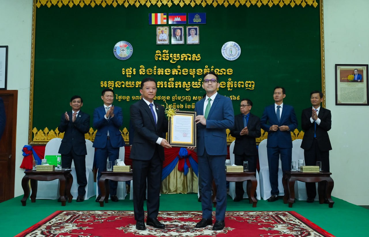 (ភ្នំពេញ)៖ នាឱកាសប្រកាសតែងតាំង លោក អ៊ិន សាកាន ជាអគ្គនាយកដើម្បីបន្តវេនដឹកនាំរដ្ឋាករទឹកស្វយ័តក្រុងភ្នំពេញ បន្ទាប់ពី លោក ឡុង ណារ៉ូ ដែលបានចូលនិវត្តន៍ លោក ហែម វណ្ណឌី រដ្ឋមន្ត្រីក្រសួងឧស្សាហកម្ម វិទ្យាសាស្ត្រ បច្ចេកវិទ្យា និងនវានុវត្តន៍ បានជំរុញឱ្យបន្តបង្កើនការយកចិត្តទុកដាក់ពង្រឹងគុណភាពសេវាកម្ម ជូនដល់ប្រជាពលរដ្ឋឱ្យកាន់តែប្រសើរឡើង។