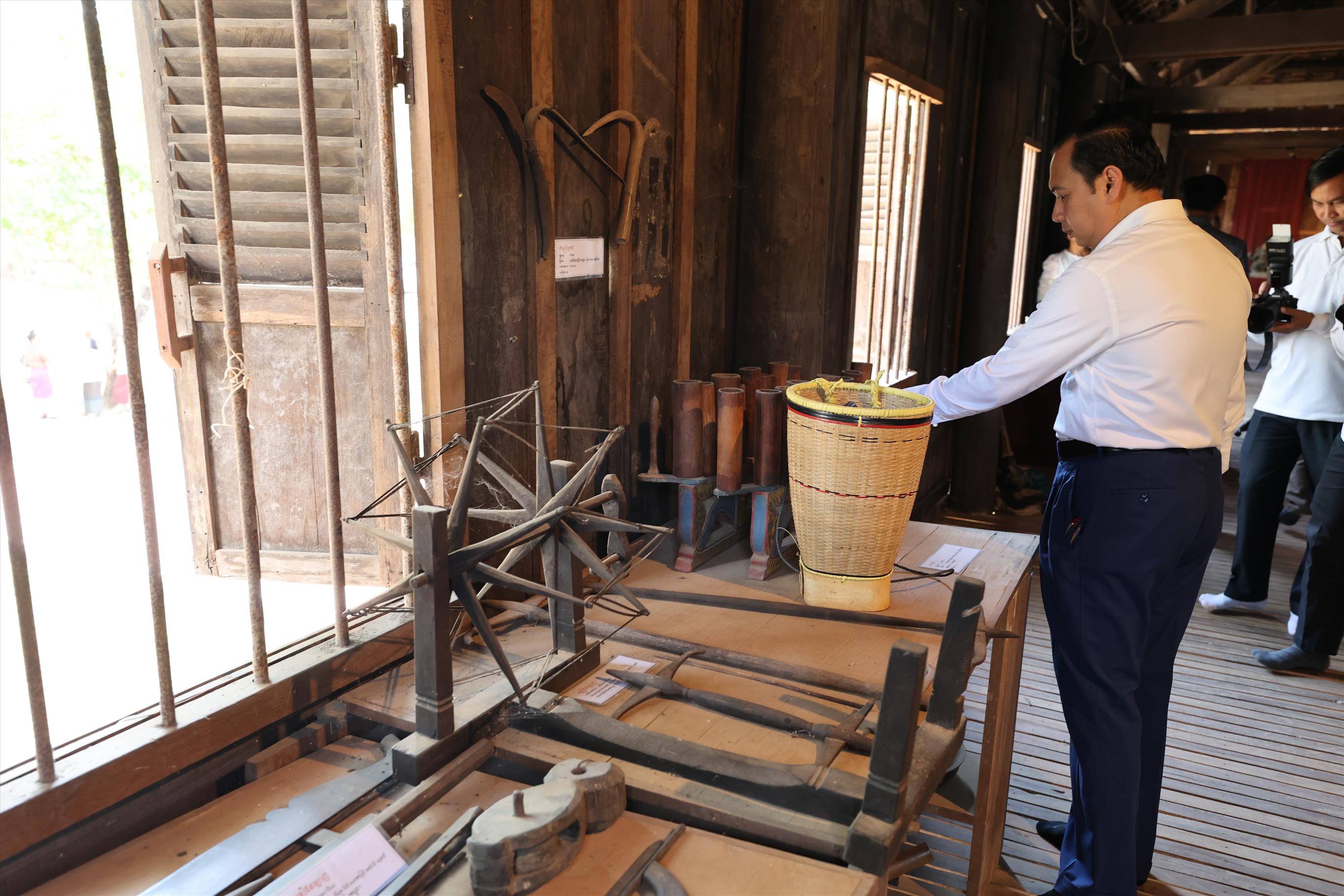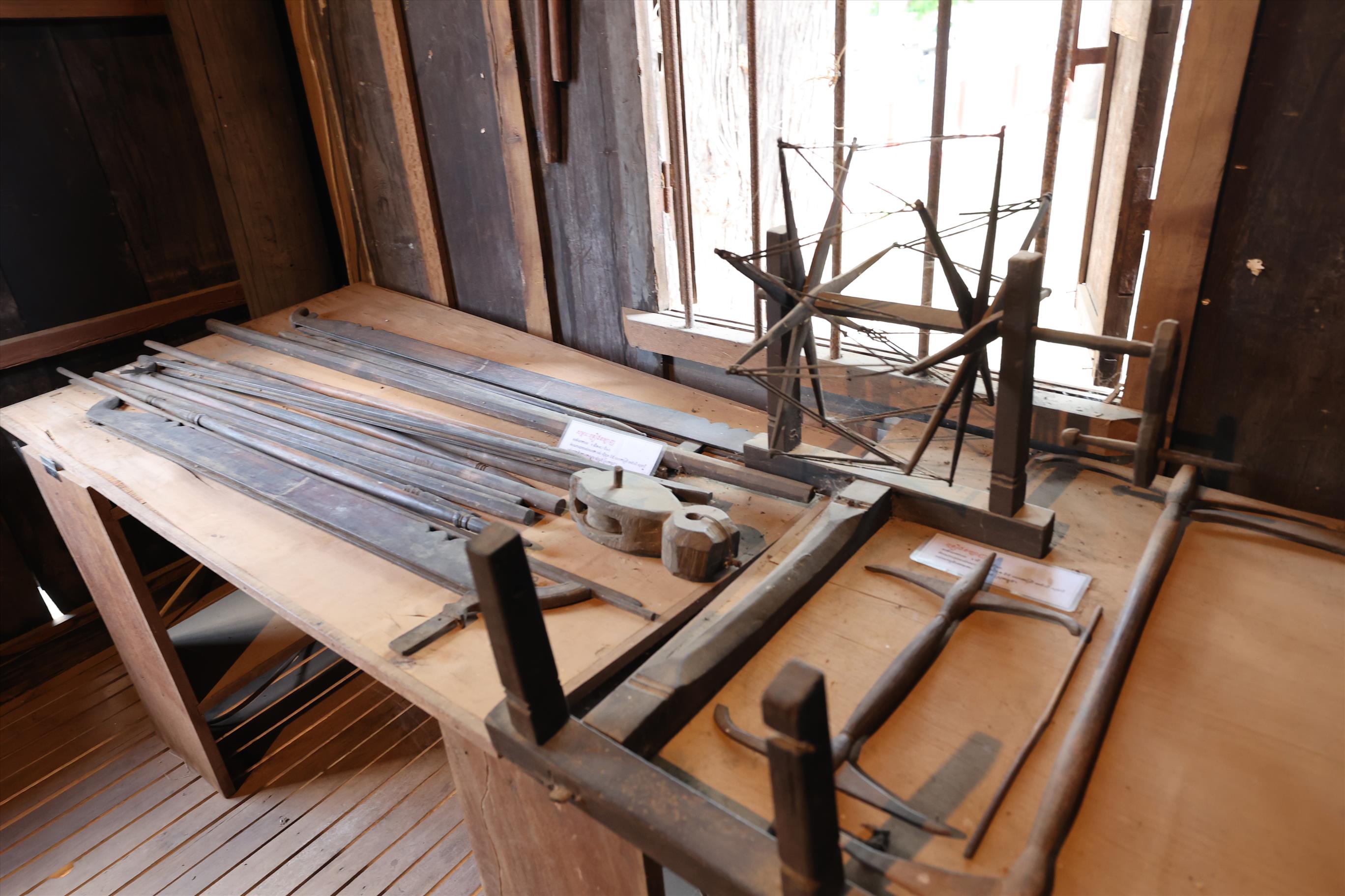 សម្ភារបុរាណមួយចំនួន ត្រូវបានរក្សាទុកដូចជាគ្រឿងសង្ហារឹម គ្រឿងតម្បាញ ព្រះគណេស កណ្តៀវ និងសម្ភារប្រើប្រាស់ផ្សេងៗទៀត ដើម្បីឱ្យភ្ញៀវទេសចរឡើងទៅទស្សនា៕