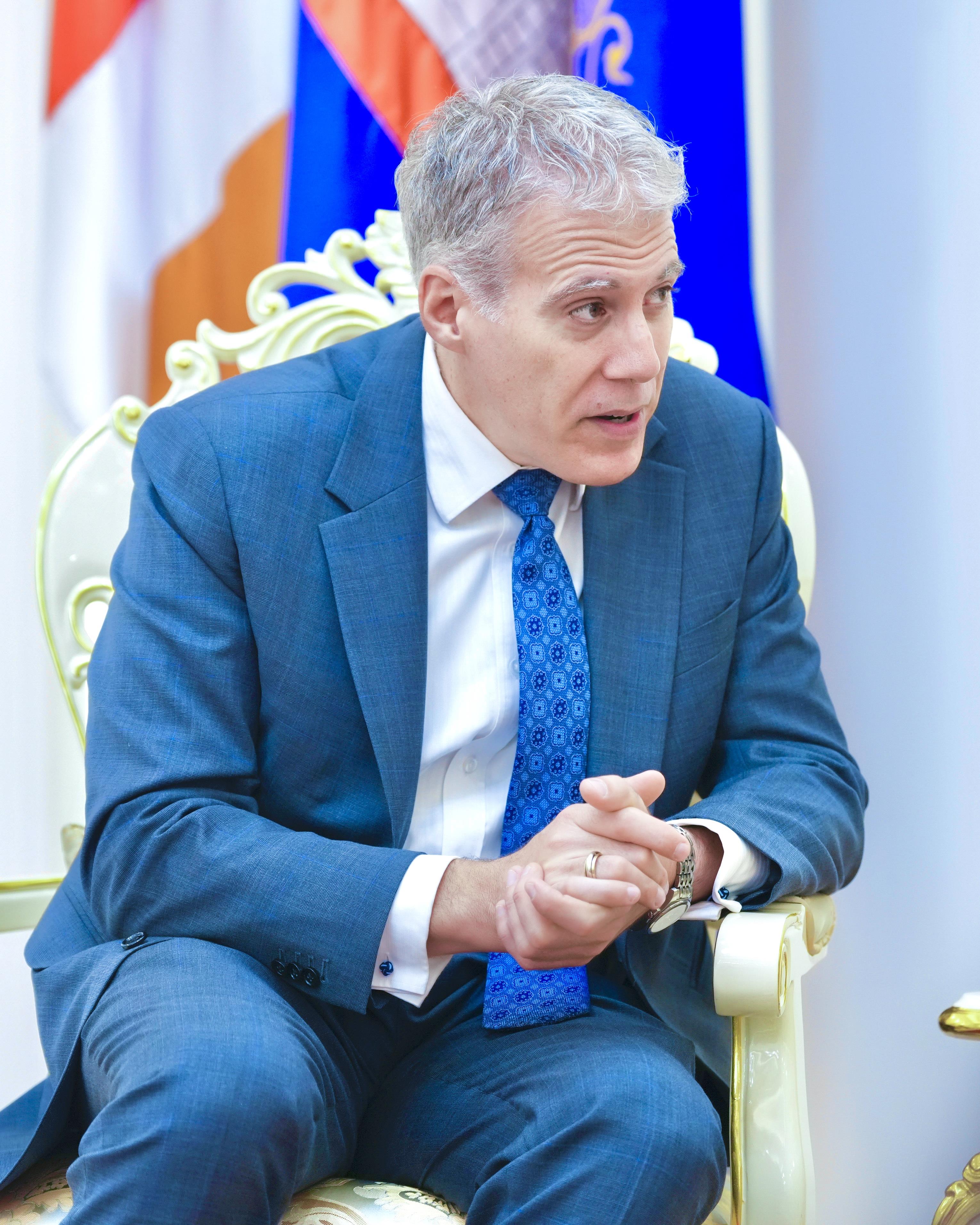 (ភ្នំពេញ)៖ នាព្រឹកថ្ងៃទី១៧ ខែមីនា ឆ្នាំ២០២៦ លោក វង្សី វិស្សុតឧបនាយករដ្ឋមន្ត្រីប្រចាំការ រដ្ឋមន្ត្រី ទទួលបន្ទុកទីស្ដីការគណៈរដ្ឋមន្ត្រី ទទួលជួបសម្តែងការគួរសម និងពិភាក្សាការងារជាមួយលោក Christian DesRoches ឯកអគ្គរដ្ឋទូតកាណាដាប្រចាំព្រះរាជាណាចក្រកម្ពុជា នៅទីស្តីការគណៈរដ្ឋមន្ត្រី ដើម្បីពិភាក្សាអំពីកិច្ចសហប្រតិបត្តិការទ្វេភាគី ក៏ដូចជាដើម្បីស្វែងរកឱកាសក្នុងការពង្រឹង និងពង្រីកកិច្ចសហប្រតិបត្តិការរវាងប្រទេសទាំងពីរបន្ថែមទៀត។