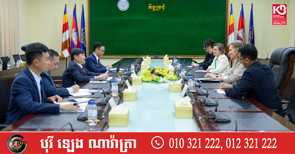 (ភ្នំពេញ)៖ លោក ហេង សួរ រដ្ឋមន្ត្រីក្រសួងការងារ និងបណ្ដុះបណ្ដាលវិជ្ជាជីវៈ នៅរសៀលថ្ងៃទី១៧ ខែមីនា ឆ្នាំ២០២៦ បានទទួលជួបសម្ដែងការគួរសម និងពិភាក្សាការងារជាមួយលោកស្រី ប្រីជែត ខូលៀរ (Bridget Collier) ភារធារីស្ថានទូតអូស្ត្រាលីប្រចាំកម្ពុជា និងលោកស្រី ធេនណាល អូហ្សេនណេស៊ី (Tennealle O'Shannessy) នាយិការប្រតិបត្តិនៃ IDP Education និងជាអ្នកធុរកិច្ចឆ្នើមអូស្ត្រាលីប្រចាំនៅកម្ពុជា ដើម្បីផ្លាស់ប្តូរមតិយោបល់ពីការពង្រឹងកិច្ចសហប្រតិបត្តិការរវាងកម្ពុជា និងអូស្ត្រាលីក្នុងការអភិវឌ្ឍជំនាញវិជ្ជាជីវៈ (TVET) ការបណ្តុះបណ្តាលភាសាអង់គ្លេស និងការជំរុញទំនាក់ទំនងធុរកិច្ចរវាងប្រទេសទាំងពីរ នៅទីស្តីការក្រសួង។