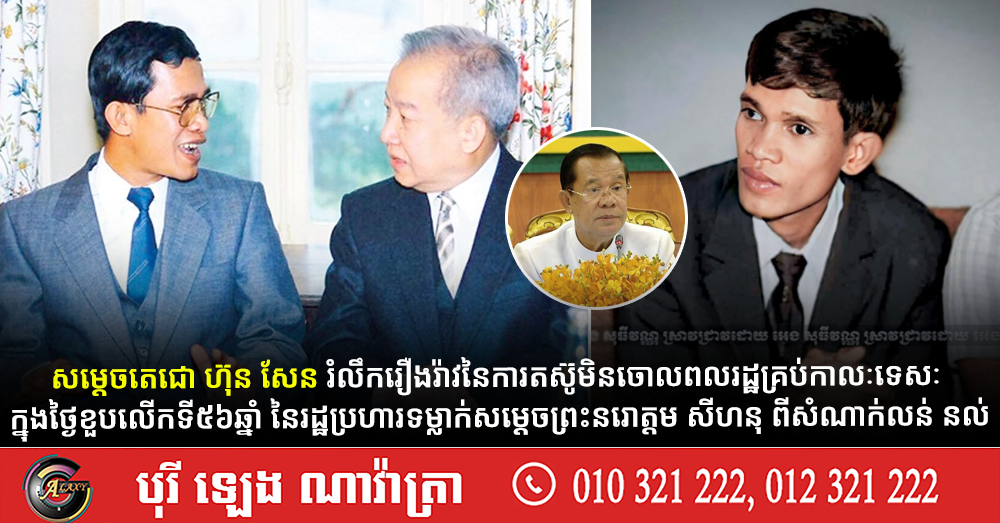សម្ដេចតេជោ ហ៊ុន សែន រំលឹករឿងរ៉ាវនៃការតស៊ូមិនចោលពលរដ្ឋគ្រប់កាលៈទេសៈ ក្នុងថ្ងៃខួបលើកទី៥៦ឆ្នាំ នៃរដ្ឋប្រហារទម្លាក់សម្ដេចព្រះនរោត្តម សីហនុ ពីសំណាក់លន់ នល់ (Video inside)
