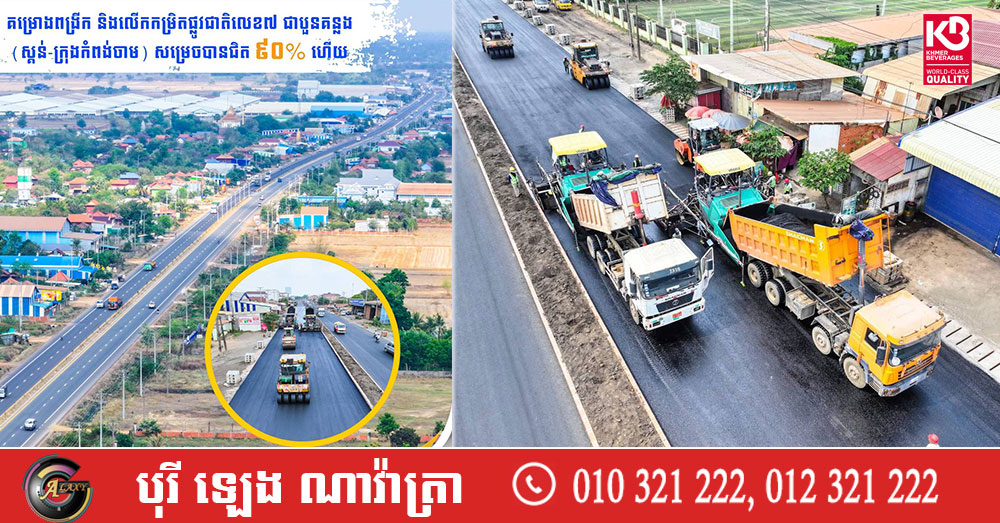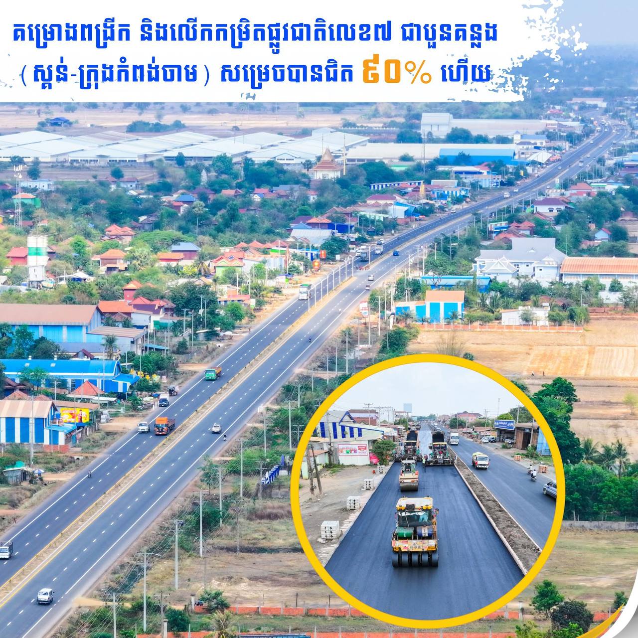គម្រោងពង្រីក និងលើកកម្រិតផ្លូវជាតិលេខ៧ ជាបួនគន្លង (ស្គន់-ក្រុងកំពង់ចាម) សម្រេចបានជិត ៩០% ហើយ
