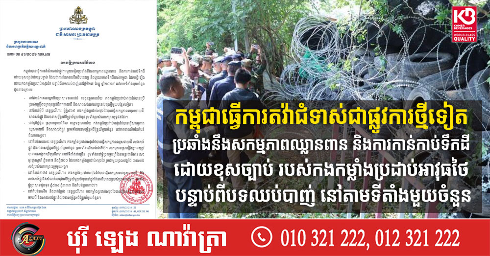 កម្ពុជាធ្វើការតវ៉ាជំទាស់ជាផ្លូវការថ្មីទៀត ប្រឆាំងនឹងសកម្មភាពឈ្លានពាន និងការកាន់កាប់ទឹកដី ដោយខុសច្បាប់ របស់កងកម្លាំងប្រដាប់អាវុធថៃ បន្ទាប់ពីបទឈប់បាញ់ នៅតាមទីតាំងមួយចំនួន (Video inside)