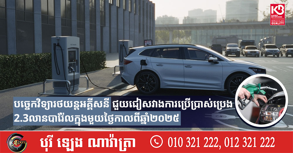 (ភ្នំពេញ)៖ ការកើនឡើងនៃការទទួលយកប្រើប្រាសយានយន្តអគ្គិសនី (EVs) នៅទូទាំងពិភពលោក បានជួយជៀសវាងការប្រើប្រាស់ប្រេងចំនួន 2.3លានបារ៉ែល ក្នុងមួយថ្ងៃកាលពីឆ្នាំមុន នេះបើយោងតាមរបាយការណ៍ពី Business Standard នាថ្ងៃទី១៨ ខែមីនា ឆ្នាំ២០២៦ ។
