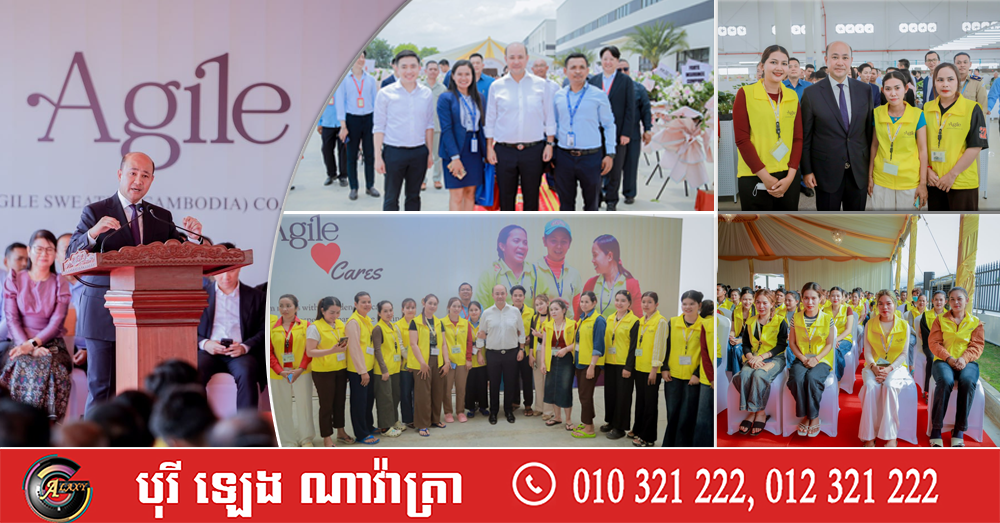 (កំពង់ស្ពឺ)៖ នាព្រឹកថ្ងៃទី១៨ ខែមីនា ឆ្នាំ២០២៦នេះ លោក ហ៊ុន ម៉ានី ឧបនាយករដ្ឋមន្ដ្រី រដ្ឋមន្ដ្រីក្រសួងមុខងារសាធារណៈ និងជាប្រធានក្រុមការងារគណបក្សចុះមូលដ្ឋានខេត្តកំពង់ស្ពឺ បានអញ្ជើញជាអធិបតីក្នុងពិធីសម្ពោធជាផ្លូវការរោងចក្រចាក់ និងកាត់ដេរសម្លៀកបំពាក់អ៊ែដ្យាយល៍ ស្វេតថឺ (ខេមបូឌា) Agile Sweater (Cambodia) នៅភូមិបុរីកម្មករ សង្កាត់ច្បារមន ក្រុងច្បារមន ខេត្តកំពង់ស្ពឺ។