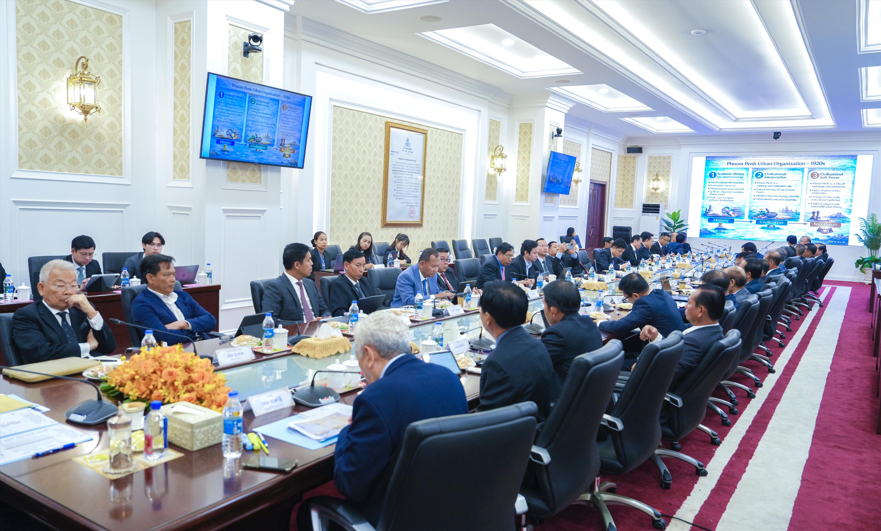 ឧបនាយករដ្ឋមន្ត្រីប្រចាំការ វង្សី វិស្សុត មានប្រសាសន៍បើកកិច្ចប្រជុំពិគ្រោះយោបល់នេះថា ការរៀបចំកិច្ចប្រជុំនេះ គឺស្របតាមការចង្អុលបង្ហាញដ៏ខ្ពង់ខ្ពស់របស់ សម្តេចធិបតី ហ៊ុន ម៉ាណែត នាយករដ្ឋមន្រ្តី នៃព្រះរាជាណាចក្រកម្ពុជា និងមានគោលបំណងពិនិត្យទៅលើការរៀបចំយន្តការដោយផ្អែកលើសសរស្តម្ភសំខាន់ៗចំនួន ៤ រួមមាន៖ (១). ការពិនិត្យអត្ថបទ និងបោះពុម្ពឯកសារដែលរៀបចំដោយស្ថាប័នសាធារណៈក្នុងកម្រិតជាតិអំពីប្រវត្តិសាស្រ្ត, វប្បធម៌ និងអារ្យធម៌ខ្មែរ (២). ការស្រាវជ្រាវដែលមានលក្ខណៈវិទ្យាសាស្រ្ត ផ្អែកលើភស្តុតាងជាក់ស្តែង និងមានការទទួលស្គាល់ជាអន្តរជាតិ(៣).ការបណ្តុះបណ្តាលនិងការផ្សព្វផ្សាយ ដើម្បីកសាងនូវការយល់ដឹងរួម និងការចងចាំរួម(Collective Memory) សម្រាប់ប្រជាជនទូទៅ និង (៤).ការកសាងភាពជាដៃគូ និងកិច្ចសហប្រតិបត្តិការជាមួយស្ថាប័ន និងអ្នកជំនាញជាតិ និងអន្តរជាតិនានា ដើម្បីឱ្យក្លាយទៅជាកម្លាំងមួយ ក្នុងការលើកស្ទួយគុណតម្លៃប្រវត្តិសាស្ត្រ វប្បធម៌ និងអារ្យធម៌ខ្មែរ។