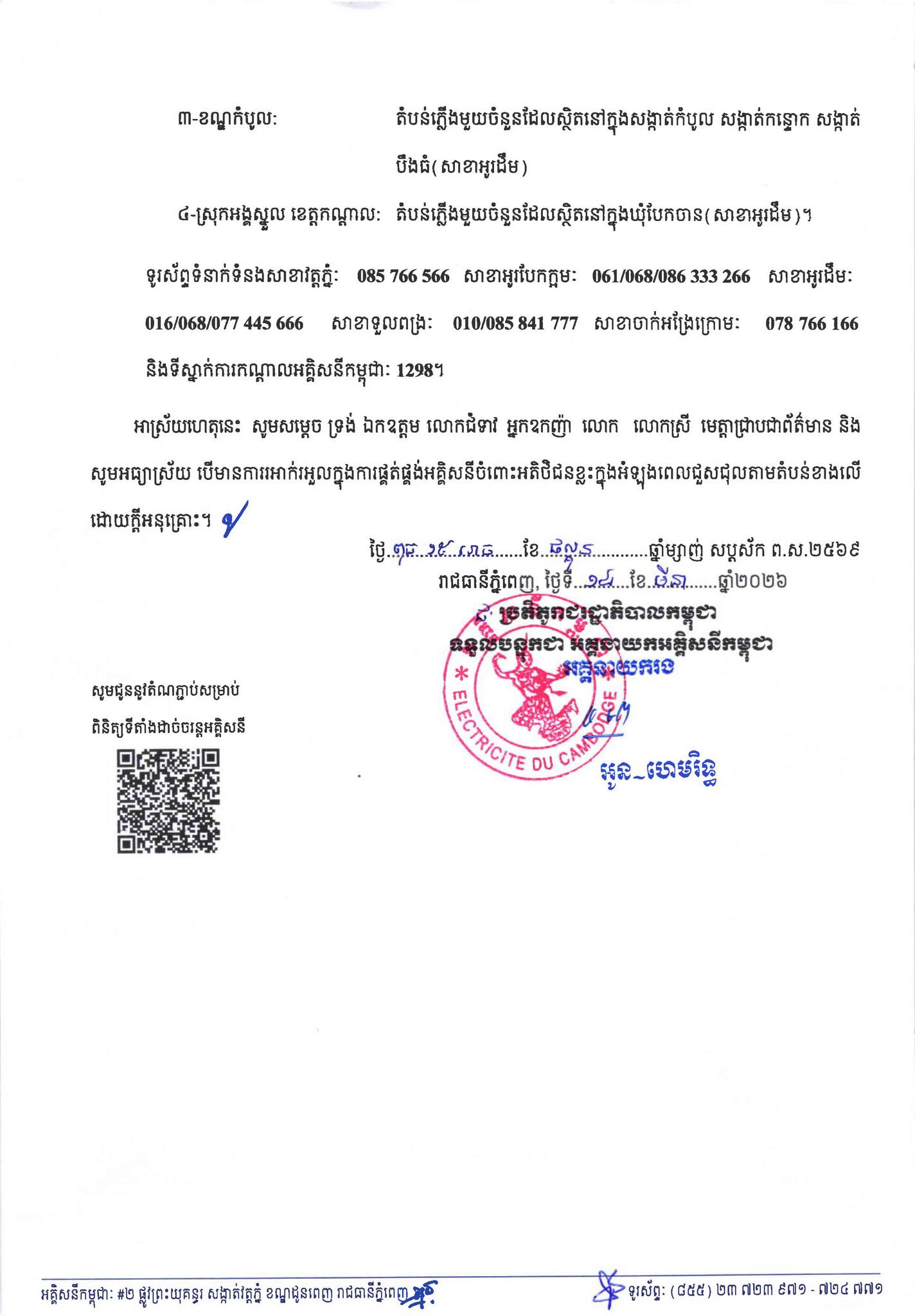 សូមអានសេចក្តីជូនដំណឹង របស់អគ្គិសនីកម្ពុជា ដូចខាងក្រោម៖