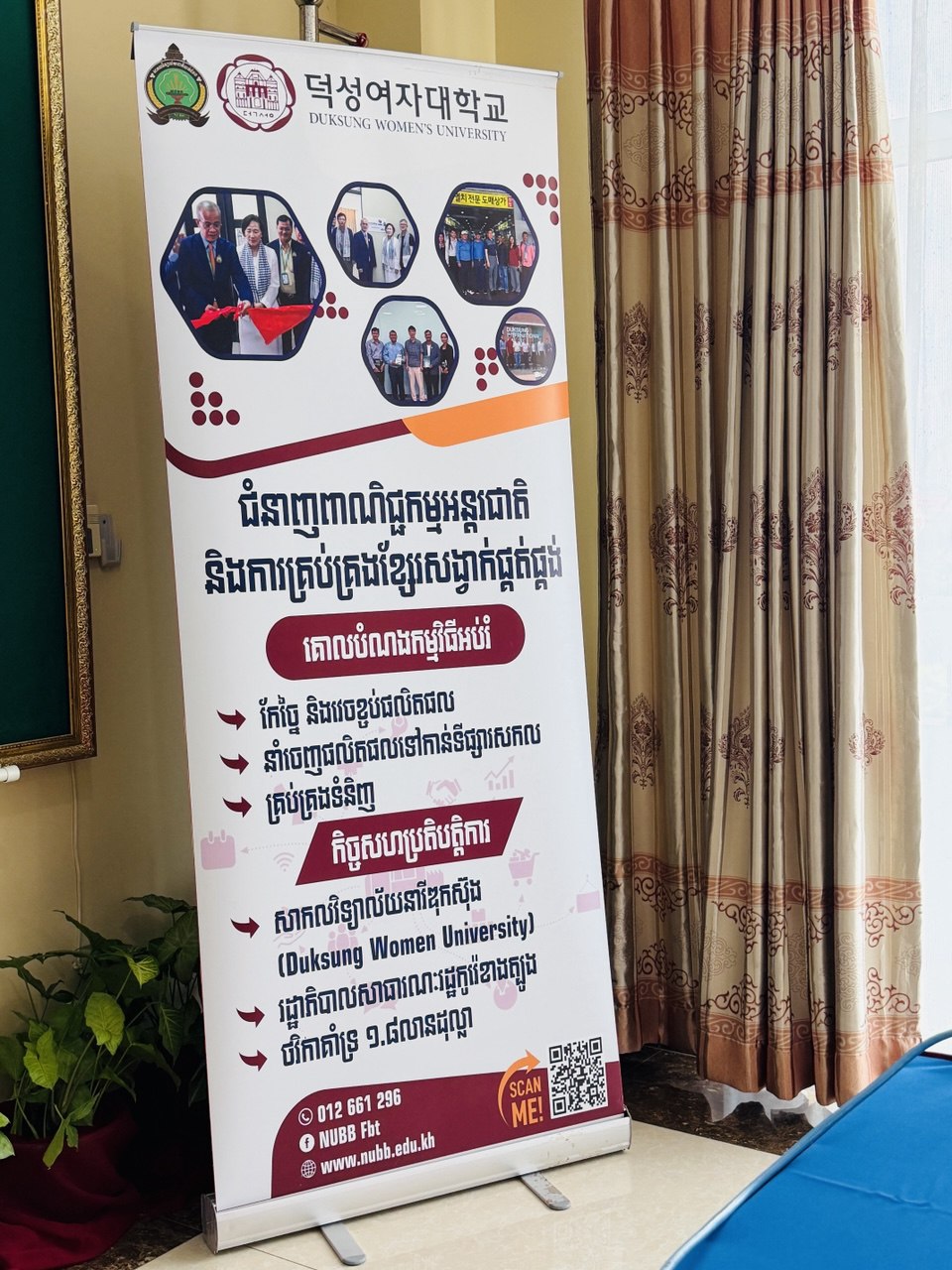 សូមបញ្ជាក់ថា សាកលវិទ្យាល័យជាតិបាត់ដំបង និងសាកលវិទ្យាល័យនារីឌុកស៊ុង បានទទួលហិរញ្ញប្បទានក្រោមគម្រោងជំនួយអភិវឌ្ឍន៍ផ្លូវការ (ODA) របស់រដ្ឋាភិបាលនៃសាធារណៈរដ្ឋកូរ៉េ ដែលមានទឹកប្រាក់ប្រមាណជា ២លានដុល្លាអាមេរិក ដែលមានរយៈពេលអនុវត្តន៍គម្រោងចំនួន៧ ឆ្នាំ ចាប់ពីឆ្នាំ២០២៤ ដល់ឆ្នាំ២០៣០។