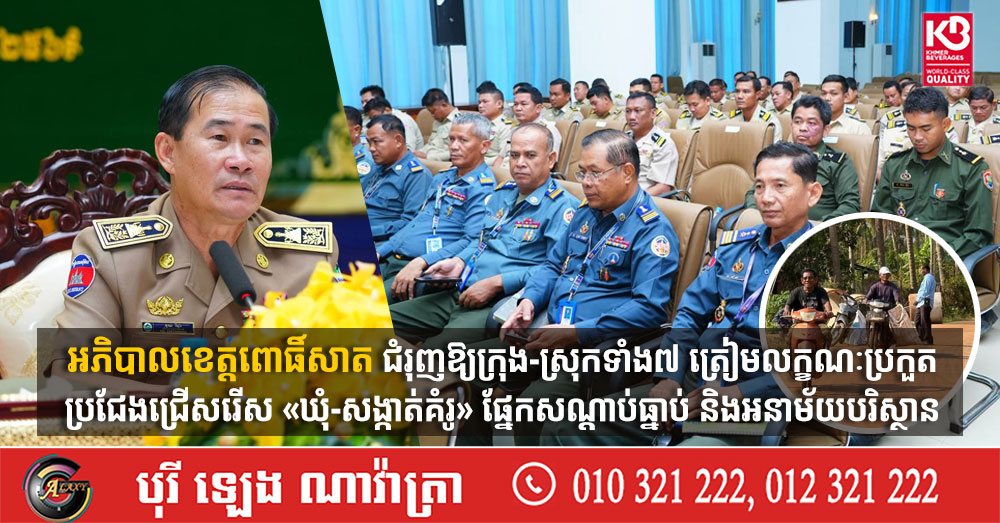 អភិបាលខេត្តពោធិ៍សាត ជំរុញឱ្យក្រុង-ស្រុកទាំង៧ ត្រៀមលក្ខណៈប្រកួតប្រជែងជ្រើសរើស «ឃុំ-សង្កាត់គំរូ» ផ្នែកសណ្តាប់ធ្នាប់ និងអនាម័យបរិស្ថាន