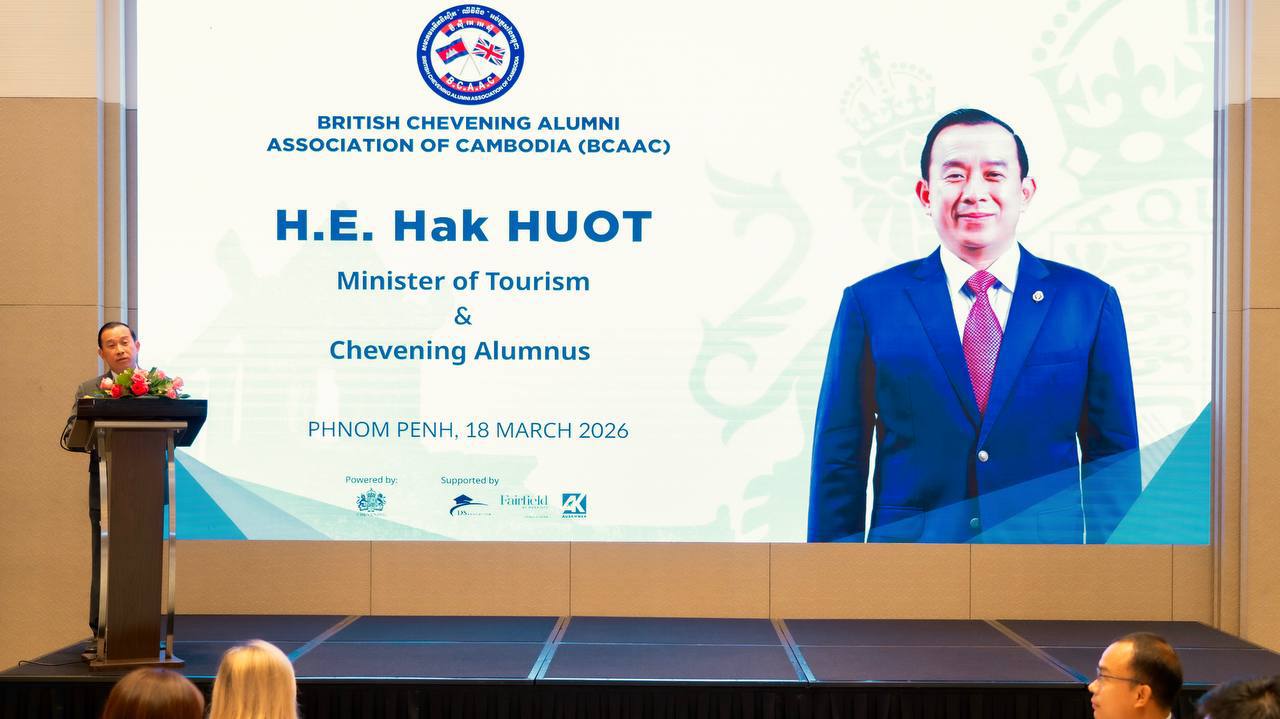 (ភ្នំពេញ)៖ លោក ហួត ហាក់ រដ្ឋមន្ត្រីក្រសួងទេសចរណ៍ នៅថ្ងៃទី១៨ ខែមីនា ឆ្នាំ ២០២៦ បានអញ្ជើញជាគណៈអធិបតី និងថ្លែងសុន្ទរកថា គន្លឹះក្នុងកិច្ចប្រជុំទូទៅប្រចាំឆ្នាំរបស់មាគមអតីតនិស្សិត Chevening (British Chevening Alumni Association of Cambodia)។