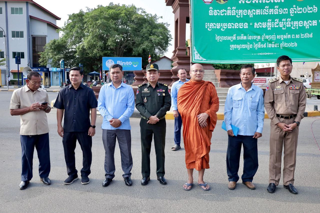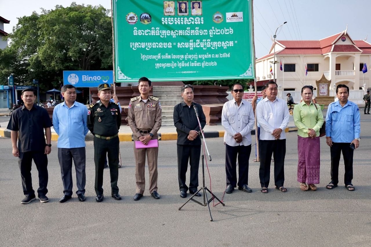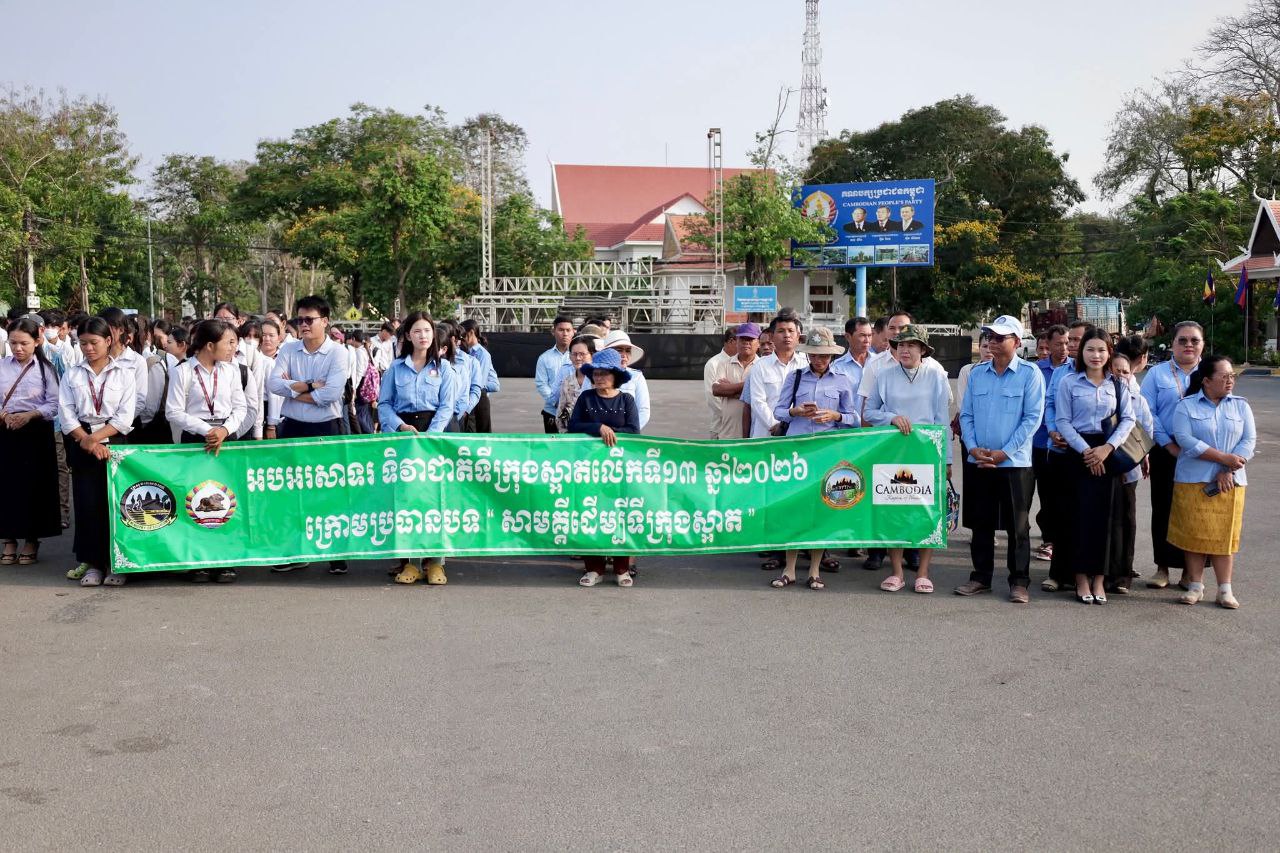(ស្វាយរៀង)៖ លោក សេង សីលា អភិបាលរងខេត្តស្វាយរៀង តំណាងអភិបាលខេត្តនៅថ្ងៃទី១៩ ខែមីនា ឆ្នាំ២០២៦ បានដឹកនាំមន្ត្រីរាជការចូលរួមពិធីបញ្ជ្រាបការយល់ដឹង និងយុទ្ធនាការសម្អាតទីក្រុង ដើម្បីចូលរួមអបអរសាទរ «ទិវាជាតិទីក្រុងស្អាត លើកទី១៣ ឆ្នាំ២០២៦» ក្រោមប្រធានបទ «សាមគ្គីដើម្បីទីក្រុងស្អាត» នៅបរិវេណរង្វង់មូលវិមានឯករាជ្យ ក្រុងស្វាយរៀង។