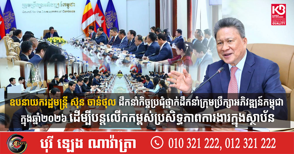 ឧបនាយករដ្ឋមន្ត្រី ស៊ុន ចាន់ថុល ដឹកនាំកិច្ចប្រជុំថ្នាក់ដឹកនាំក្រុមប្រឹក្សាអភិវឌ្ឍន៍កម្ពុជា ក្នុងឆ្នាំ២០២៦ ដើម្បីបន្តលើកកម្ពស់ប្រសិទ្ធភាពការងារក្នុងស្ថាប័ន