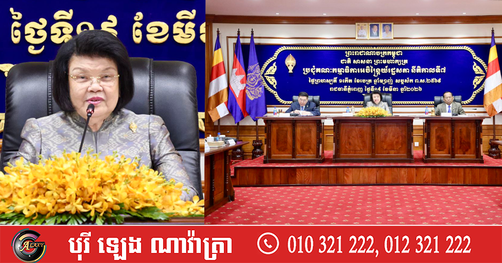 (ភ្នំពេញ)៖ សម្តេចមហារដ្ឋសភាធិការធិបតី ឃួន សុដារី ប្រធានរដ្ឋសភា នៅព្រឹកថ្ងៃទី១៩ ខែមីនា ឆ្នាំ២០២៦ បានអញ្ជើញដឹកនាំកិច្ចប្រជុំគណៈកម្មាធិការអចិន្ត្រៃយ៍រដ្ឋសភា ដើម្បីអនុម័តលើរបៀបវារៈមួយចំនួន។