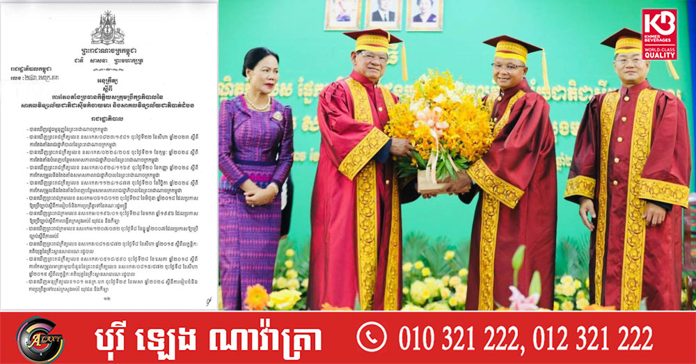 សម្តេចបវរធិបតី ហ៊ុន ម៉ាណែត ចេញអនុក្រឹត្យតែងតាំង សម្តេចក្រឡាហោម ស ខេង ជាប្រធានកិត្តិយស ក្រុមប្រឹក្សាភិបាលនៃសាកលវិទ្យាល័យជាតិ ជាស៊ីមកំចាយមារ និងសាកលវិទ្យាល័យជាតិបាត់ដំបង
