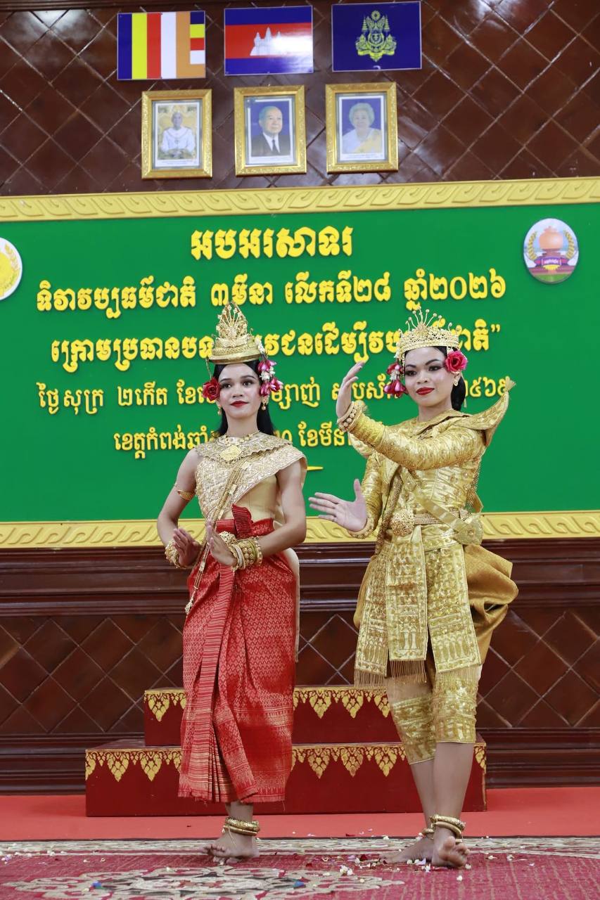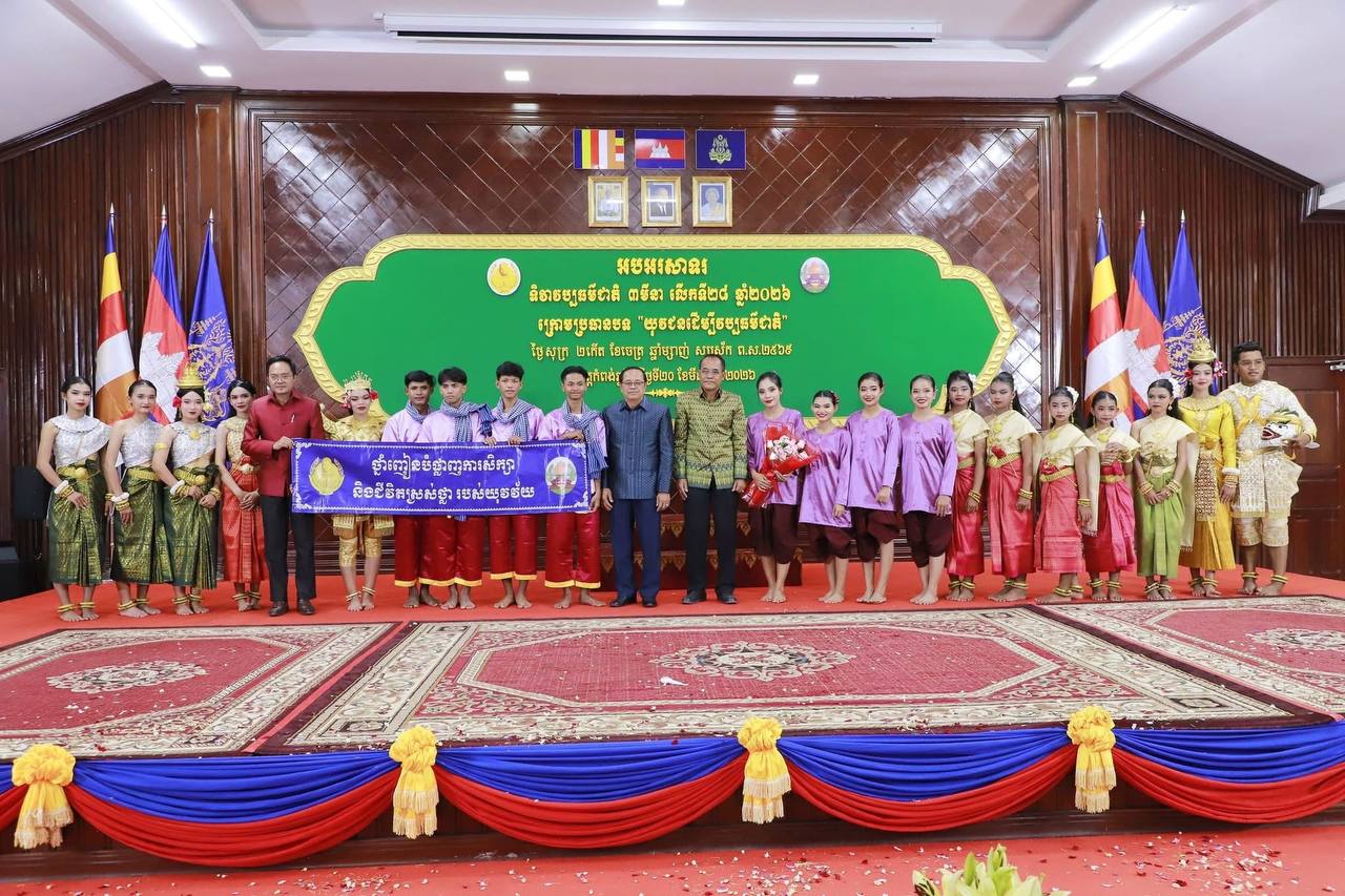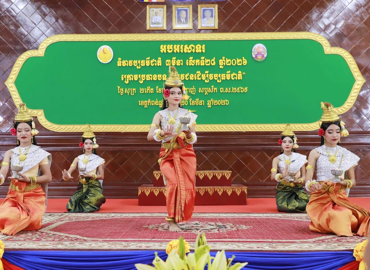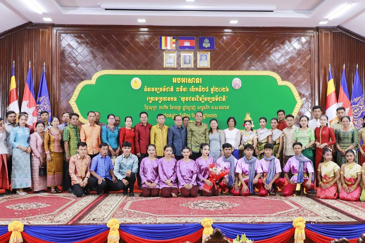 (កំពង់ឆ្នាំង)៖ មន្ទីរវប្បធម៌និងវិចិត្រសិល្បៈខេត្តកំពង់ឆ្នាំង បានរៀបចំអបអរសាទរទិវាវប្បធម៌ជាតិ ៣មីនា លើកទី២៨ ឆ្នាំ២០២៦ ក្រោមប្រធានបទ «យុវជនដើម្បីវប្បធម៌ជាតិ» ដោយទទួលបានការគាំទ្រពីរដ្ឋបាលខេត្ត នៅព្រឹកថ្ងៃទី២០ ខែមីនា ឆ្នាំ២០២៦ ក្រោមអធិបតីភាពលោក ឡុច សុវណ្ណារ៉ា សមាជិកក្រុមប្រឹក្សាខេត្ត តំណាងលោក ស៊ីវ រុន ប្រធានក្រុមប្រឹក្សា លោក យិន សាវ៉េន អភិបាលរងខេត្ត តំណាងលោក ស៊ុន សុវណ្ណារិទ្ធិ អភិបាលនៃគណៈអភិបាលខេត្ត ព្រមទាំងមានការអញ្ជើញចូលរួមពី កងកម្លាំងទាំងបី លោក លោកស្រី ប្រធានមន្ទីរ អនុប្រធានមន្ទីរជុំវិញខេត្ត អង្គការ សមាគម តំណាងធនាគារមីក្រូហិរញ្ញវត្ថុ យុវជនកាយឫទ្ធិខេត្ត យុវជនកាកបាទក្រហមកម្ពុជាខេត្ត យុវជនសហភាពសហព័ន្ធយុវជនកម្ពុជាខេត្ត លោកគ្រូ អ្នកគ្រូ និងសិស្សានុសិស្ស សរុបប្រមាណ ៣៦៥នាក់។