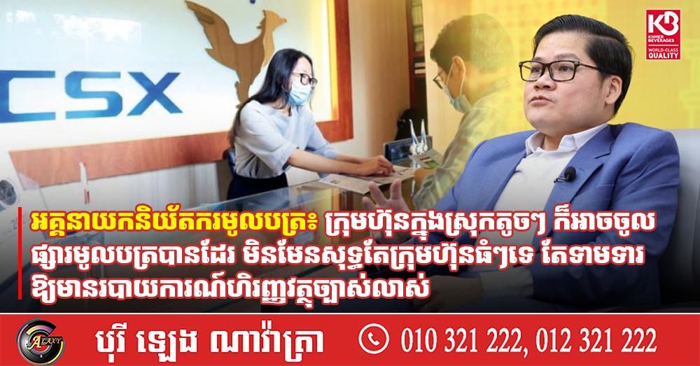 អគ្គនាយកនិយ័តករមូលបត្រ៖ ក្រុមហ៊ុនក្នុងស្រុកតូចៗ ក៏អាចចូលផ្សារមូលបត្របានដែរ មិនមែនសុទ្ធតែក្រុមហ៊ុនធំៗទេ តែទាមទារឱ្យមានរបាយការណ៍ហិរញ្ញវត្ថុច្បាស់លាស់ (Video inside)